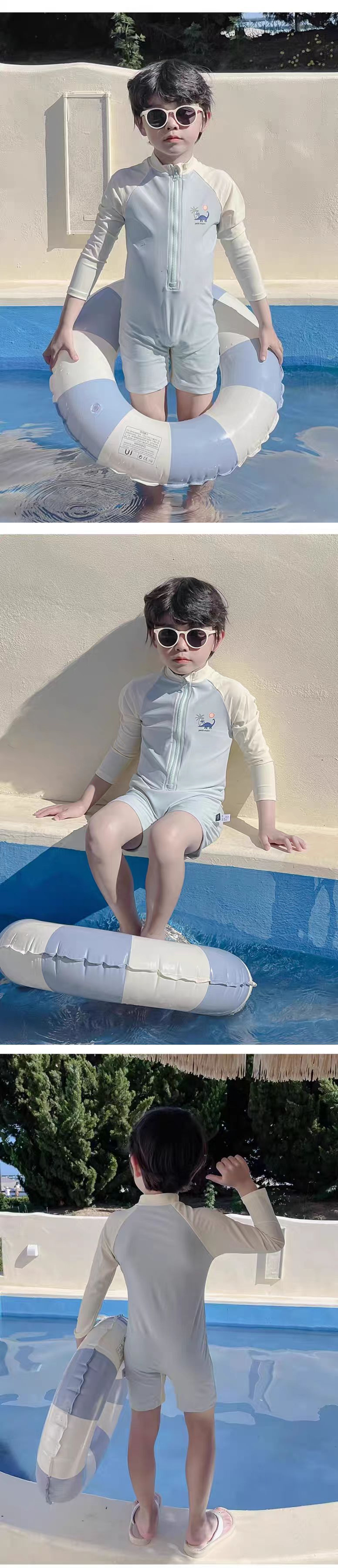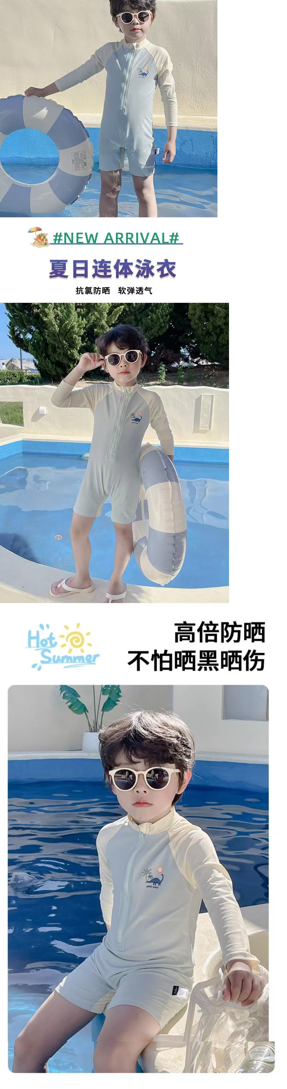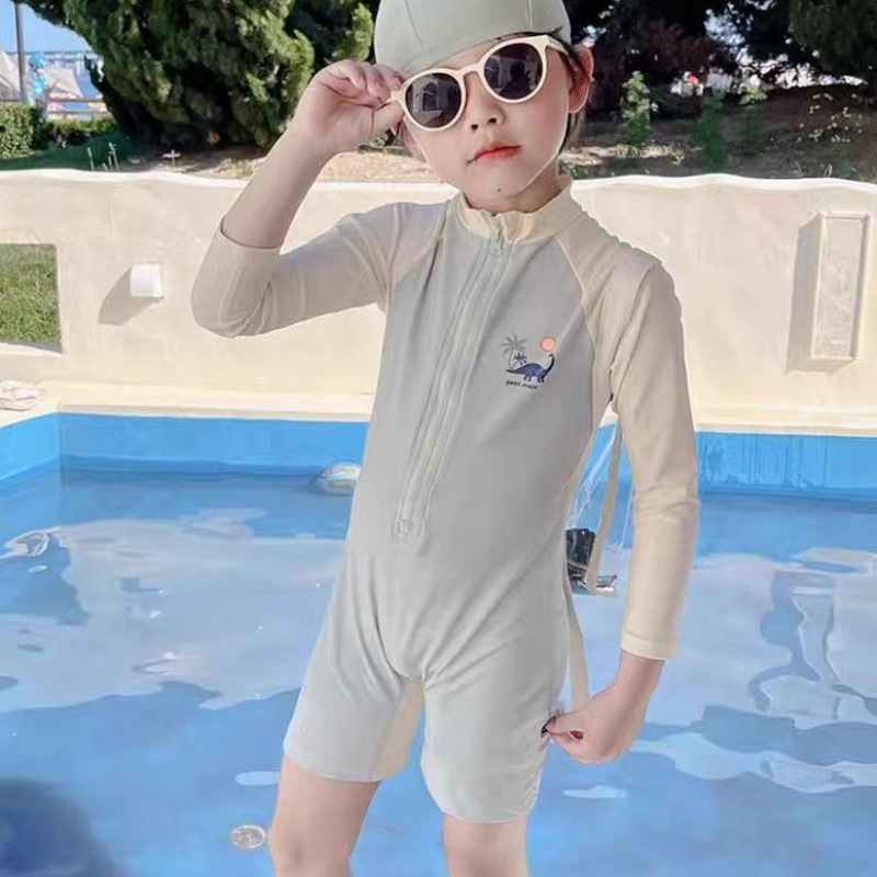 아동 수영복 소년 지퍼 원피스 수영복 여름 긴팔 자외선 차단제 속건성 온천 해변 휴가 수영복 유행