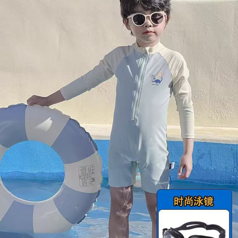 아동 수영복 소년 지퍼 원피스 수영복 여름 긴팔 자외선 차단제 속건성 온천 해변 휴가 수영복 유행스토어 가기