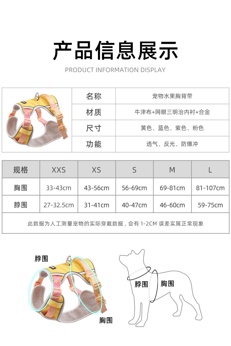 국경 간 소형, 중형 및 대형견 과일 하네스 견인 로프 안전 벨트 방폭형 개 하네스스토어 가기