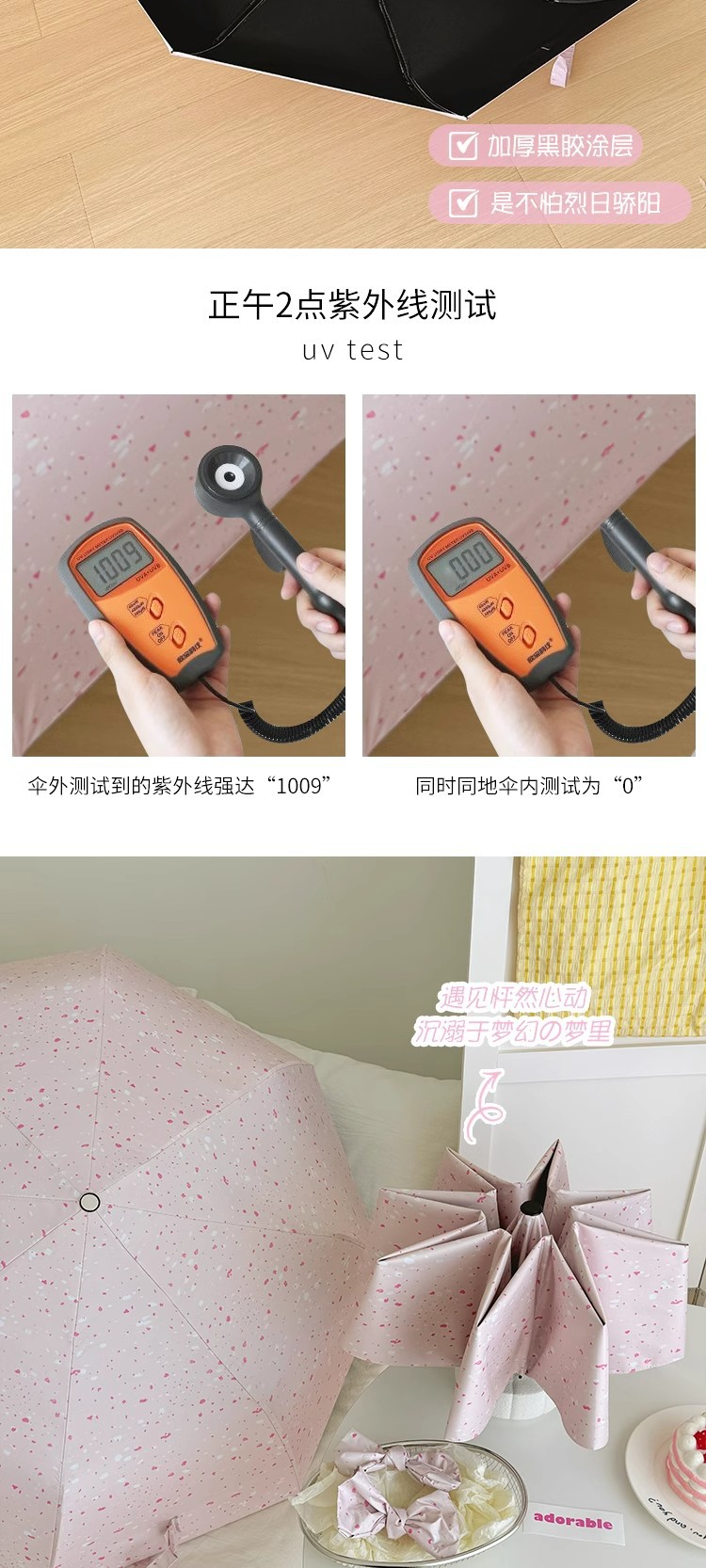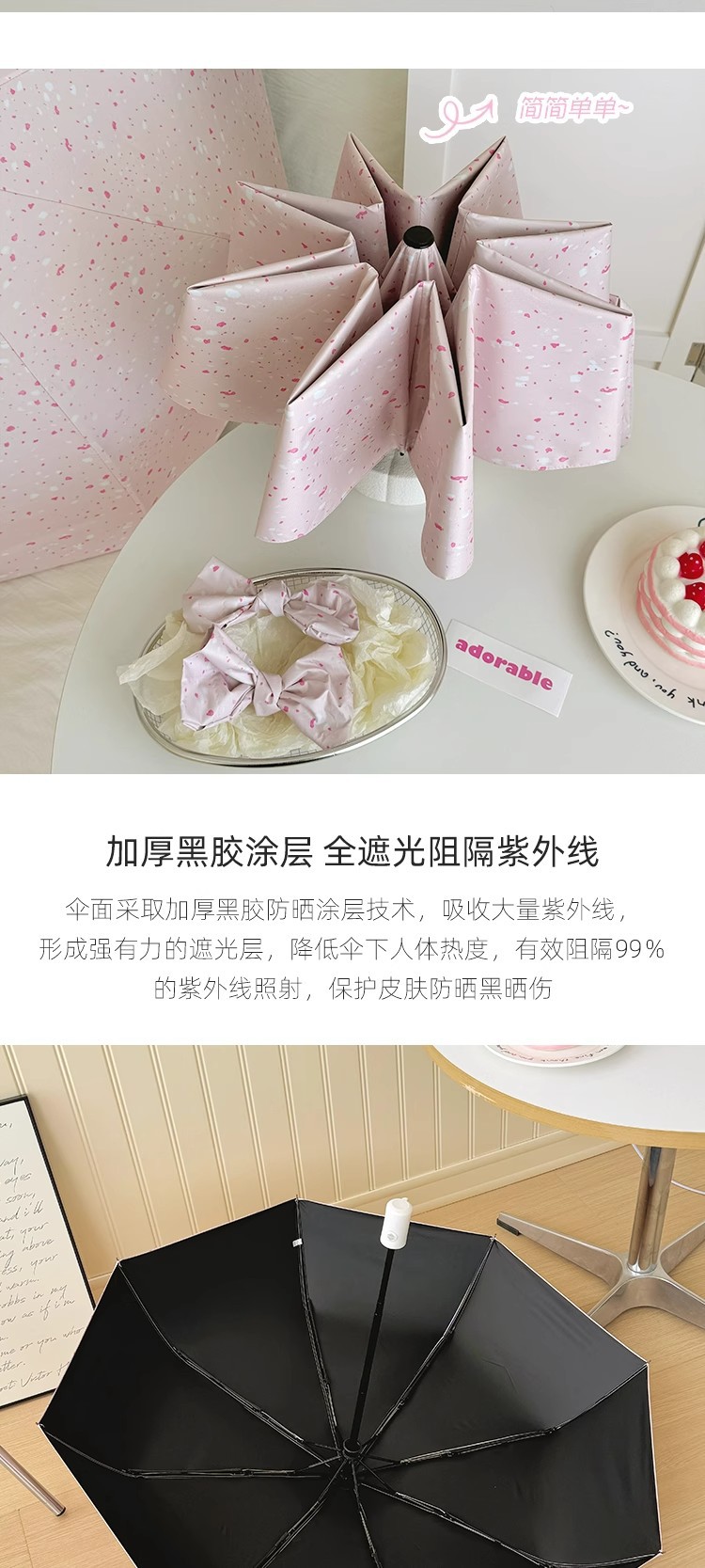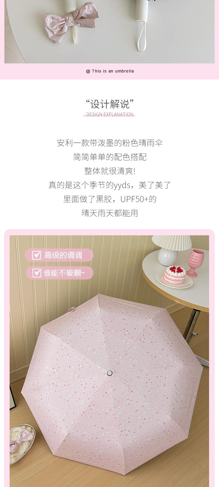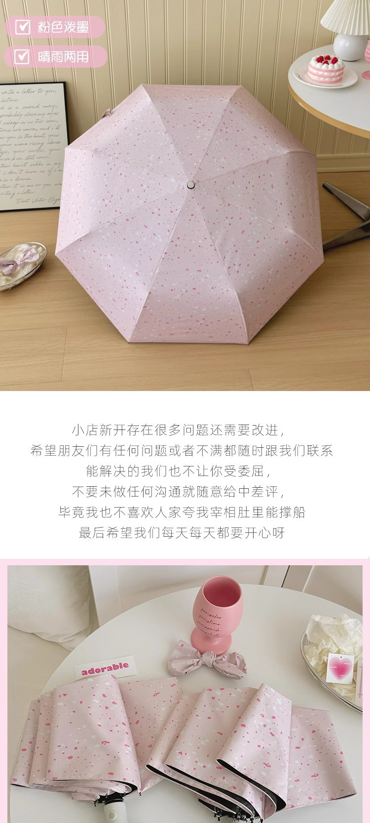 높은 가치의 핑크 스플래시 잉크 우산 맑고 비 이중 사용 태양 우산 여성의 검은 고무 선 스크린 UV 보호 내구성있는 햇빛