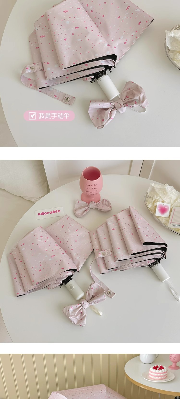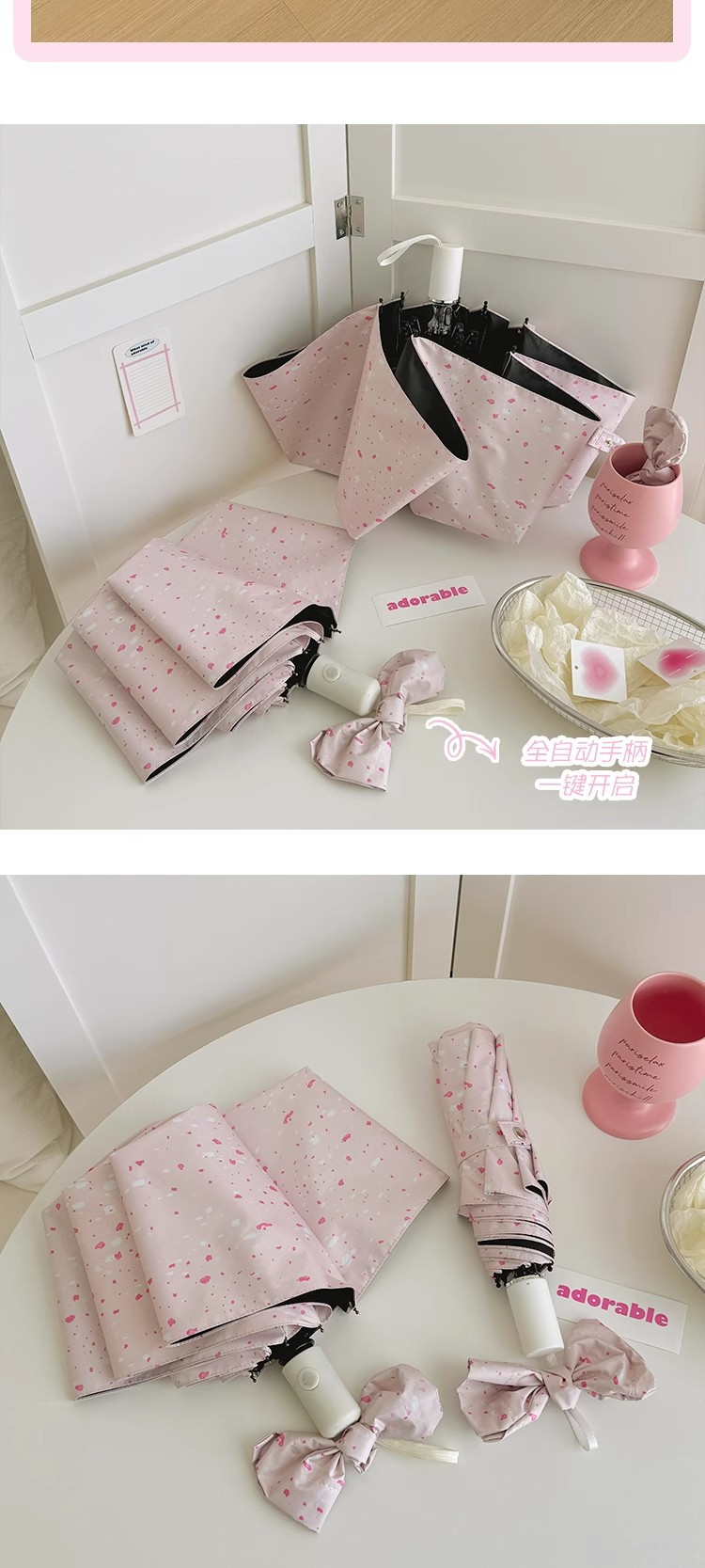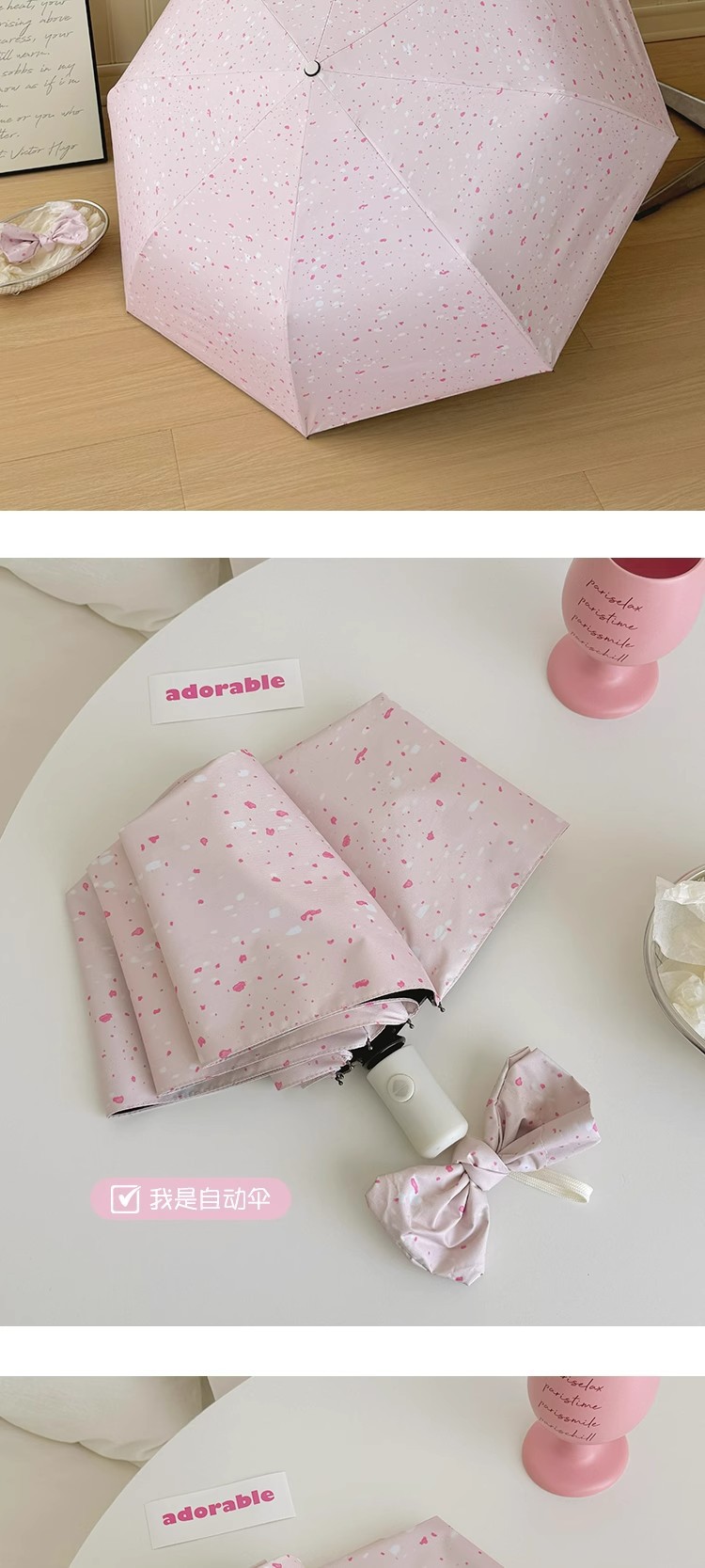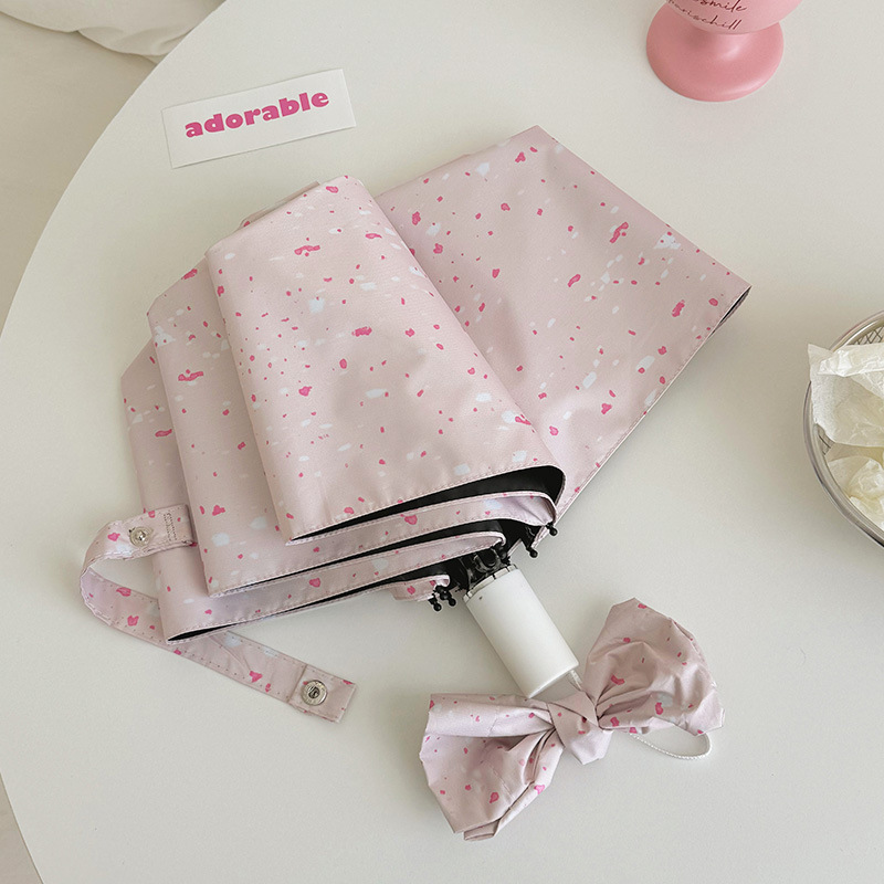 높은 가치의 핑크 스플래시 잉크 우산 맑고 비 이중 사용 태양 우산 여성의 검은 고무 선 스크린 UV 보호 내구성있는 햇빛