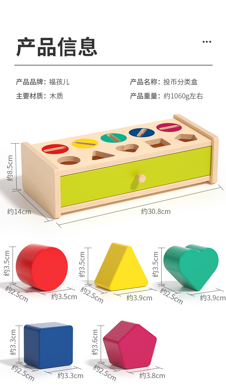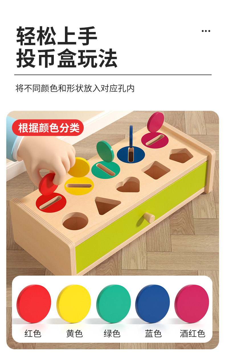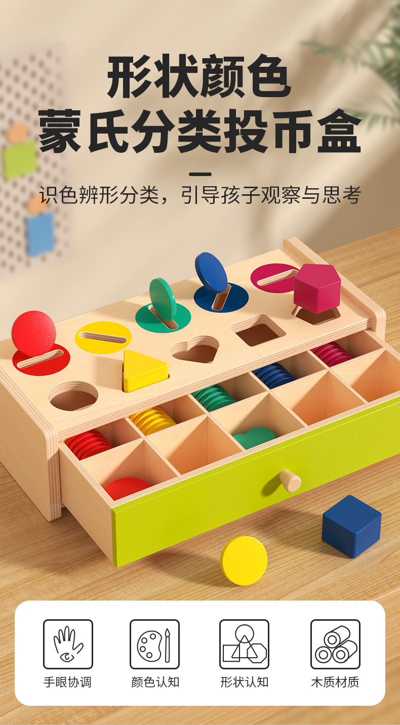 蒙氏分类早教投币盒宝宝颜色认知形状积木配对教具婴儿童益智玩具
