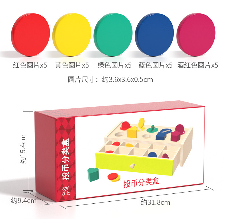몬테소리 분류 조기 교육 동전 상자 아기 색상 인식 모양 빌딩 블록 일치하는 교육 보조 아기 교육 장난감