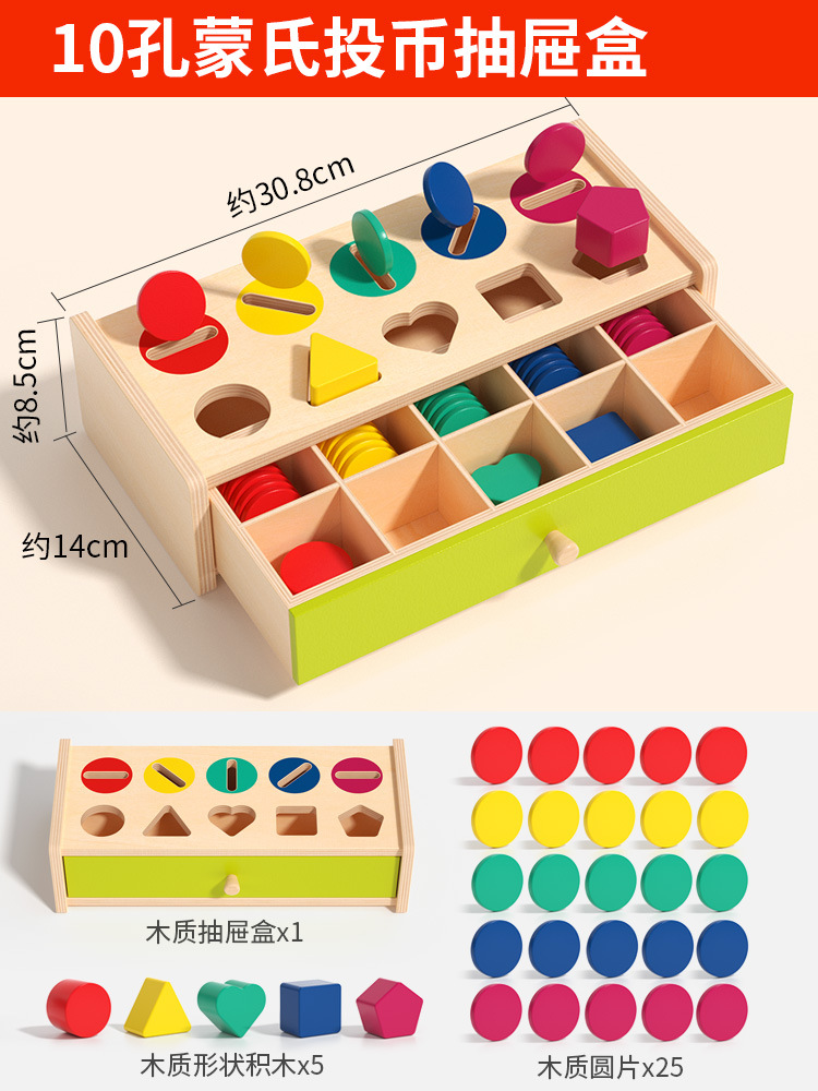 • 10홀 몬테소리 동전식 서랍장 [몬테소리 교육/미세운동 훈련/목표 분류 계몽]
