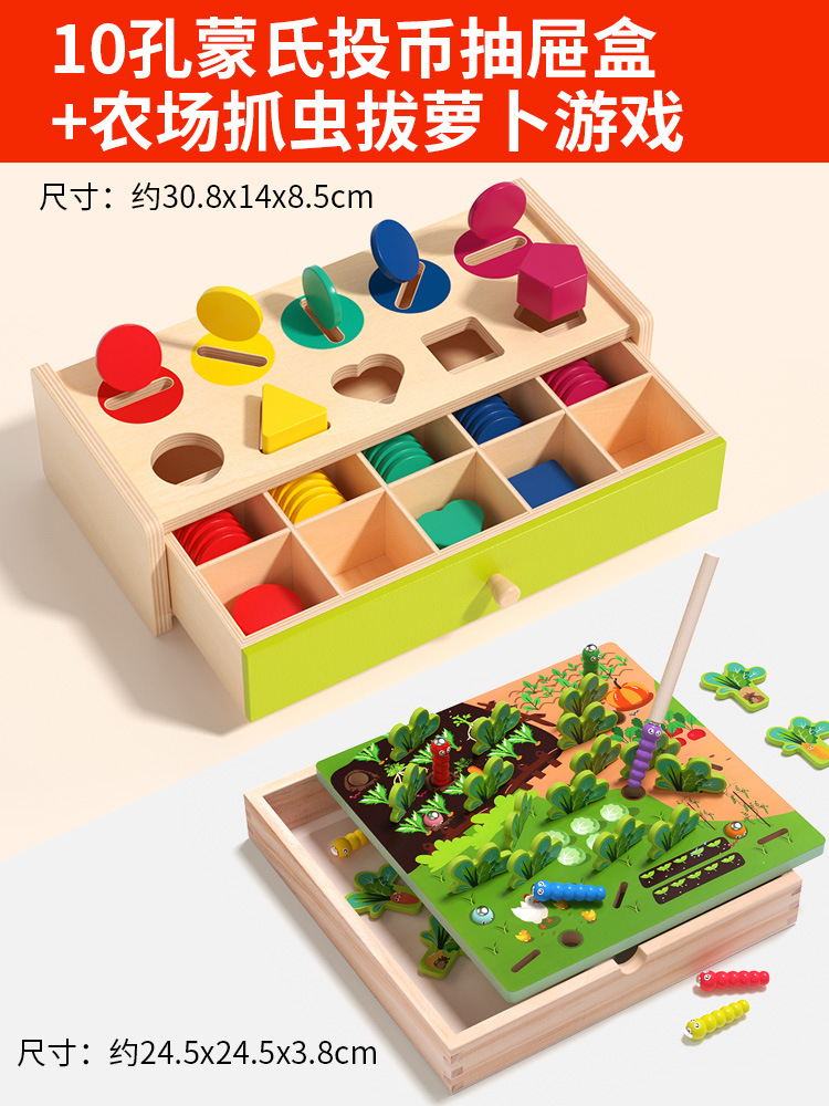 • 10홀 몬테소리 동전 투입식 서랍 상자 + 농장 곤충 잡기 및 무 뽑기 게임