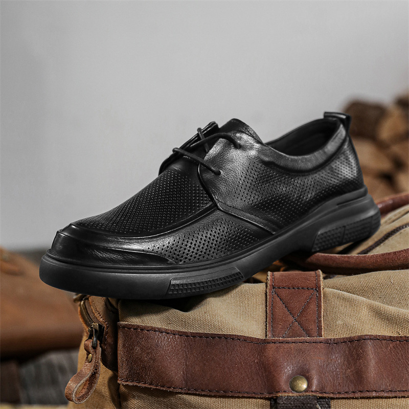 남성용 가죽 신발 2025 봄 신작 비즈니스 캐주얼 작업 신발 부드러운 표면 정품 가죽 올 블랙 순수 소 가죽 남성 신발