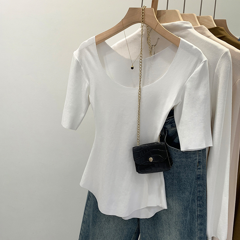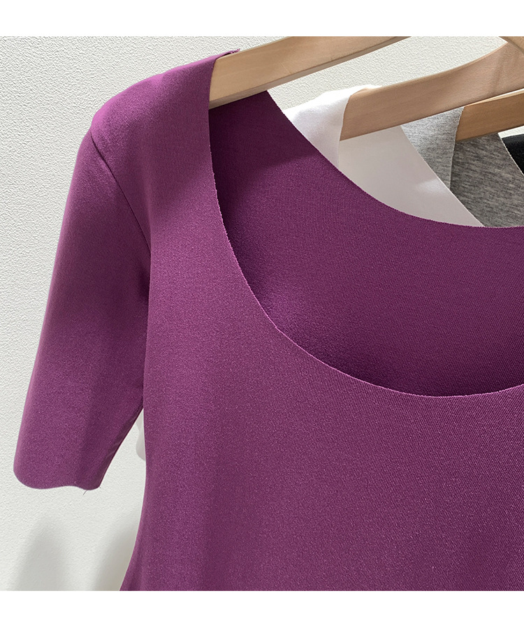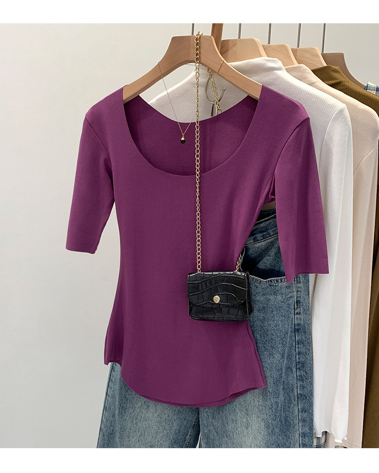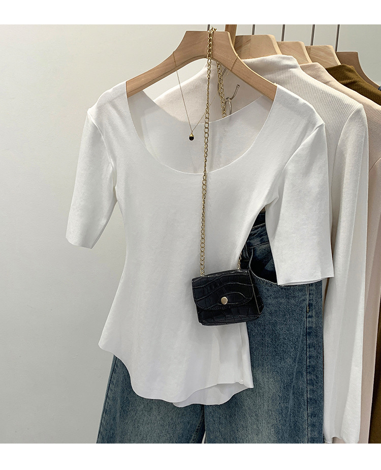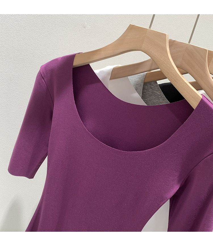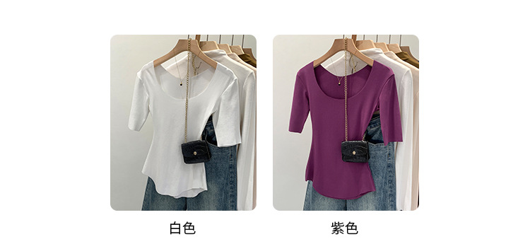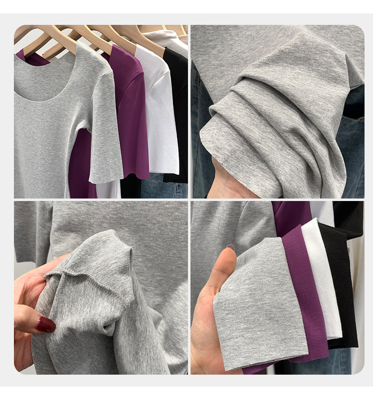 2026년 초봄 인기상품 그레이 U넥 반팔 티셔츠 여성 통근복 여름 신상품 유니크하고 예쁜 허리라인이 잘 드러나는 디자인