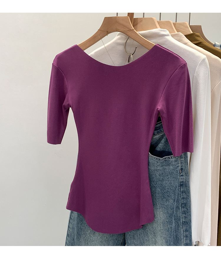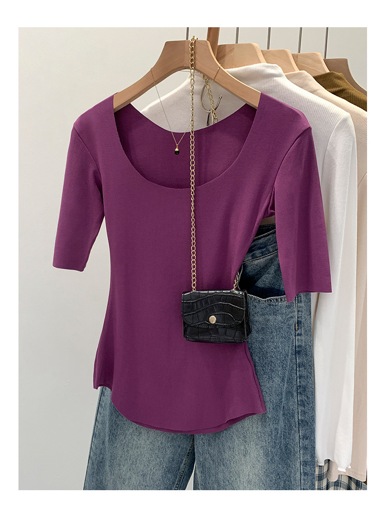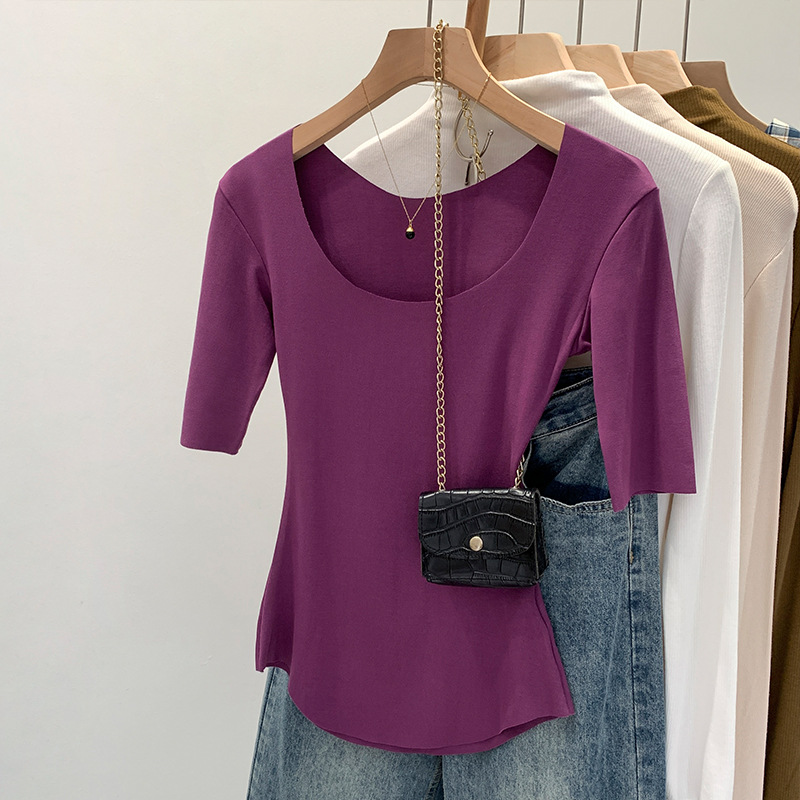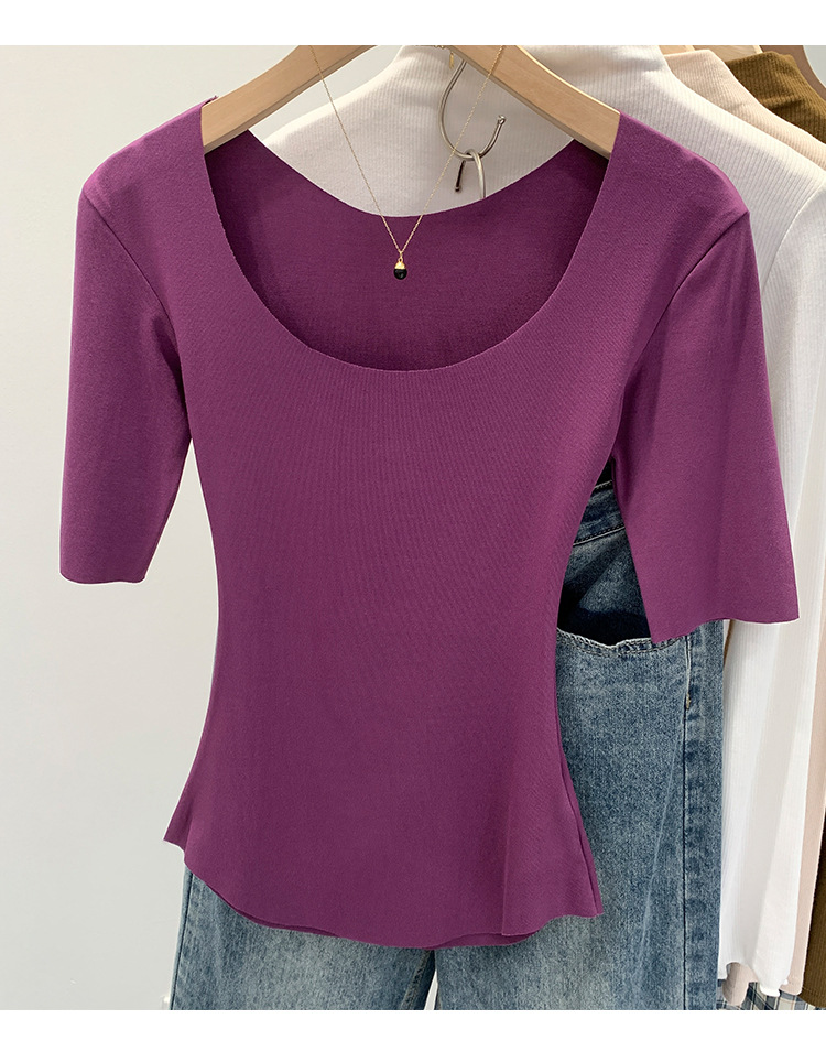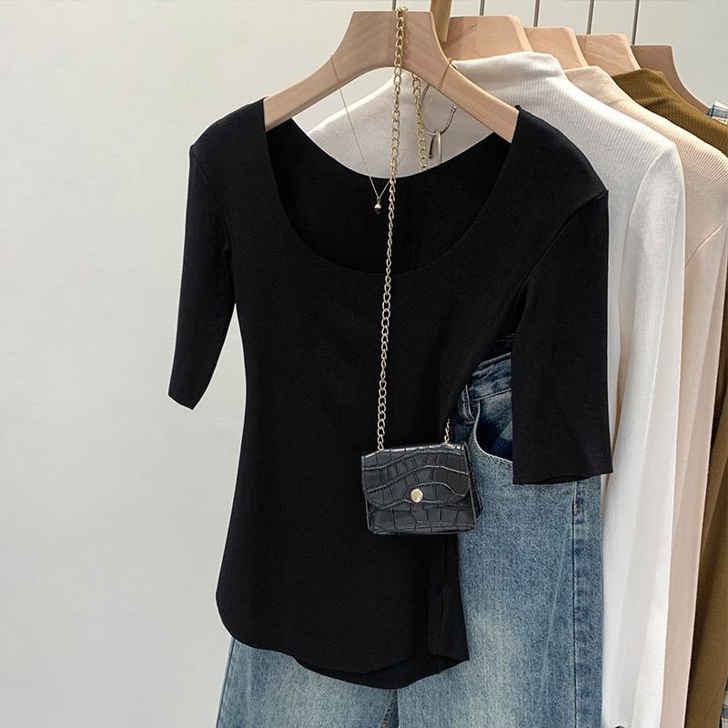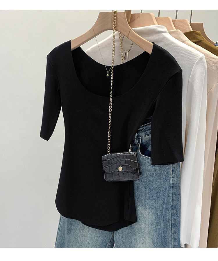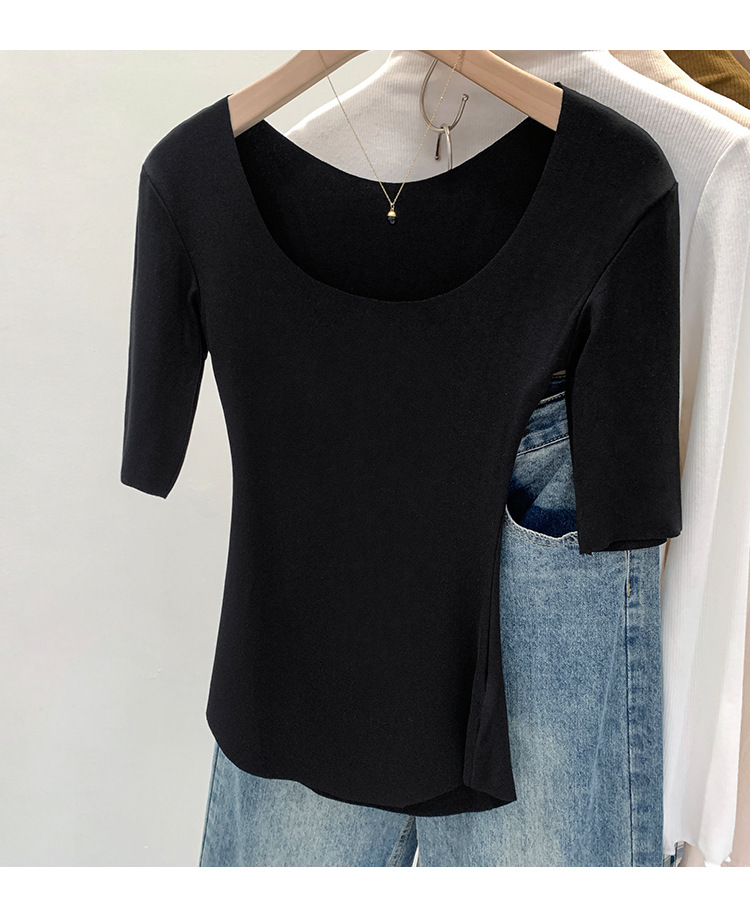 2026년 초봄 인기상품 그레이 U넥 반팔 티셔츠 여성 통근복 여름 신상품 유니크하고 예쁜 허리라인이 잘 드러나는 디자인