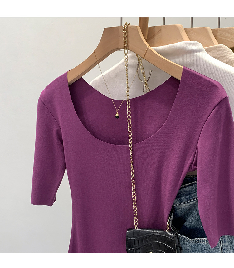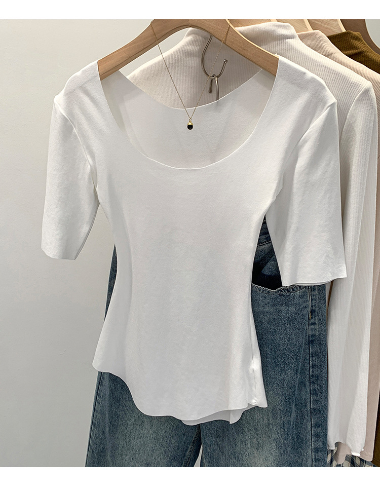 2026년 초봄 인기상품 그레이 U넥 반팔 티셔츠 여성 통근복 여름 신상품 유니크하고 예쁜 허리라인이 잘 드러나는 디자인스토어 가기
