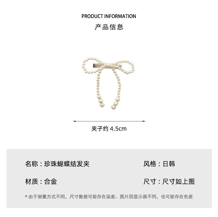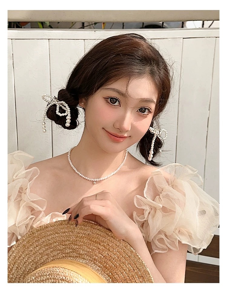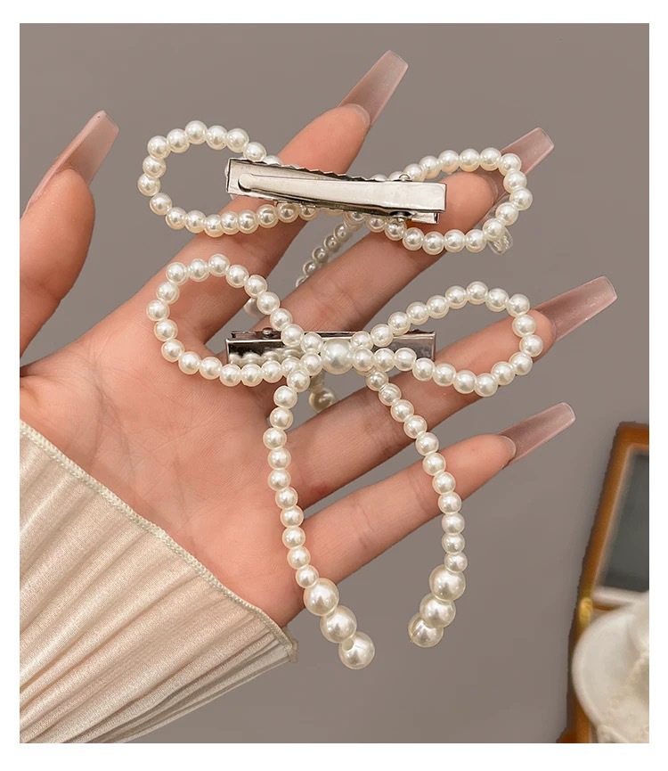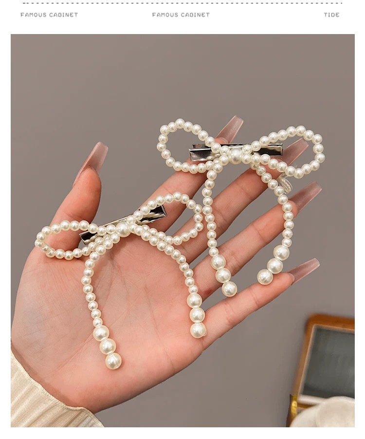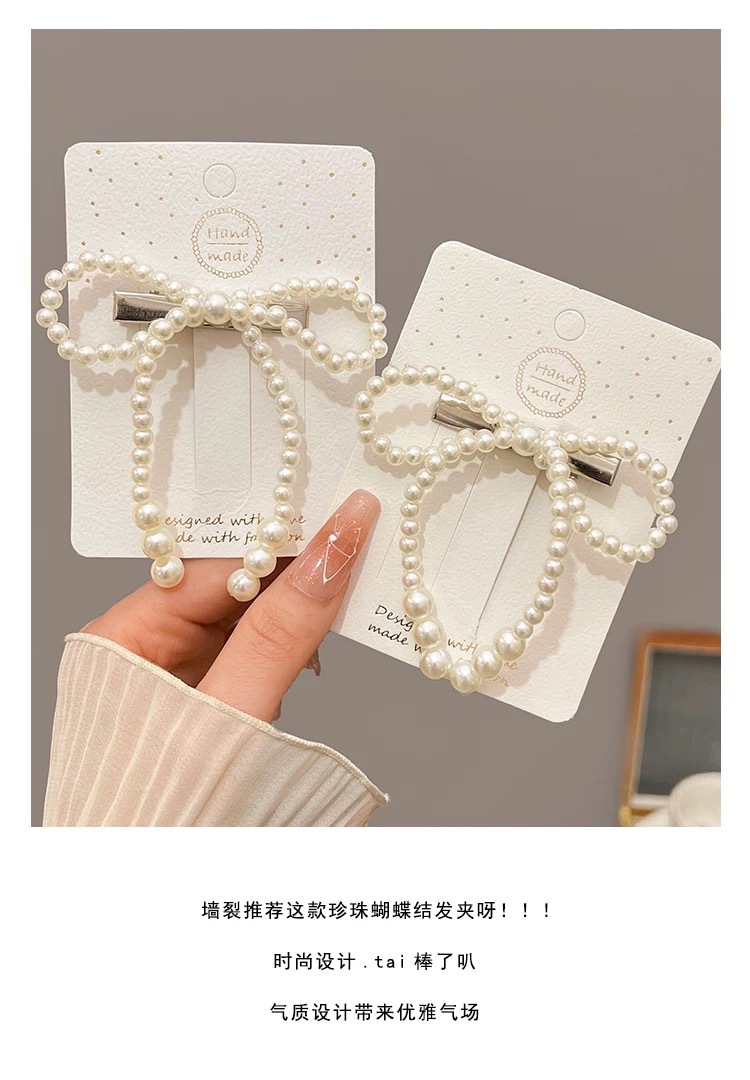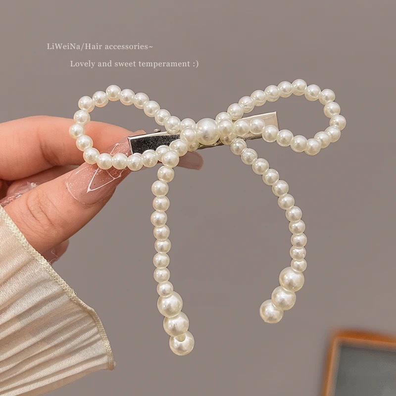 프렌치 레트로 펄 보우 헤어핀 여성용 사이드 뱅 클립 고급 깨진 헤어 덕빌 클립 헤어핀 헤드웨어스토어 가기