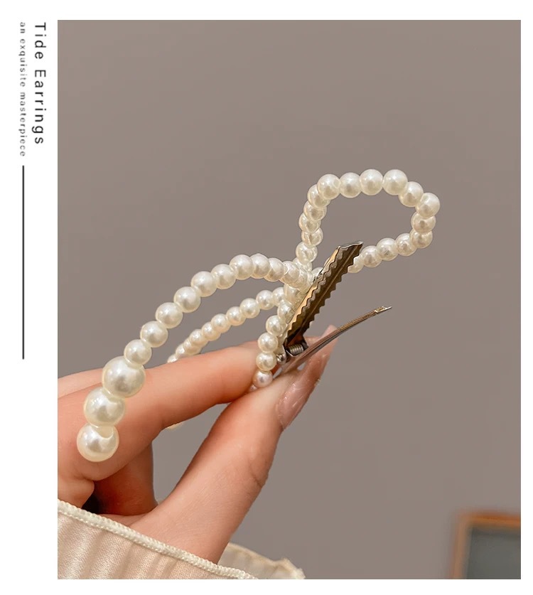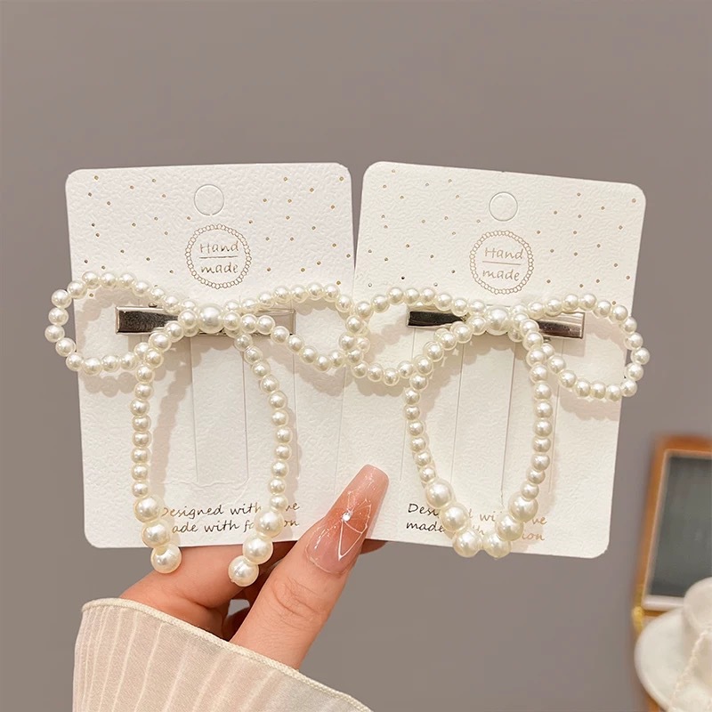 프렌치 레트로 펄 보우 헤어핀 여성용 사이드 뱅 클립 고급 깨진 헤어 덕빌 클립 헤어핀 헤드웨어