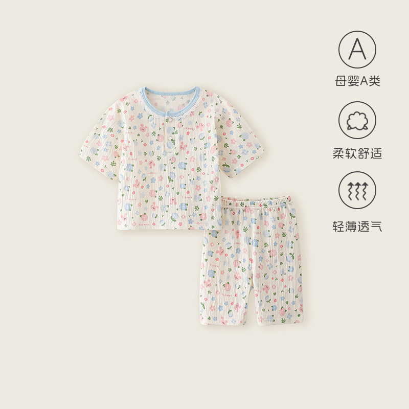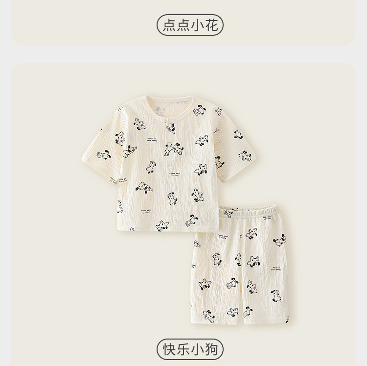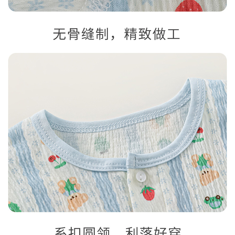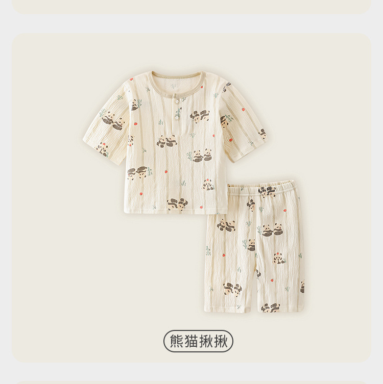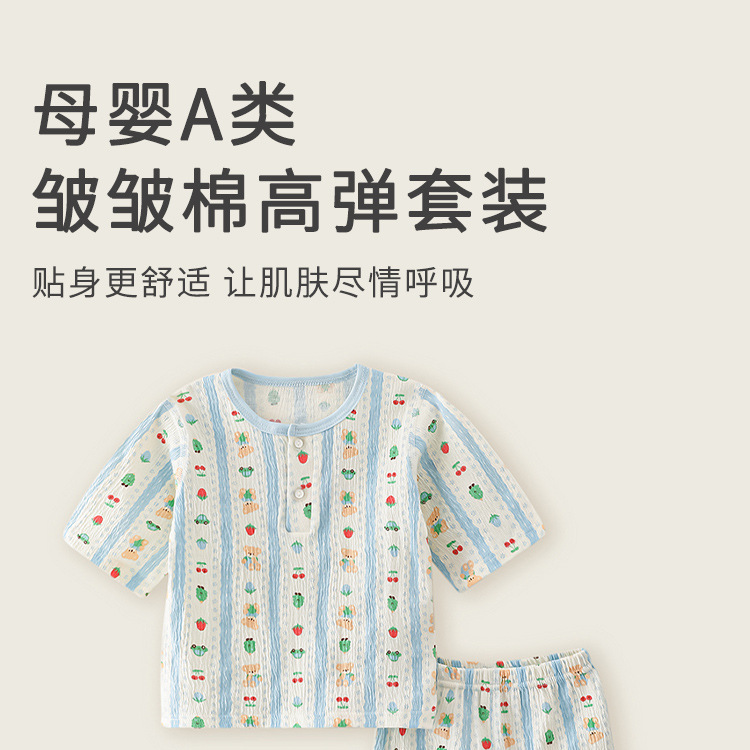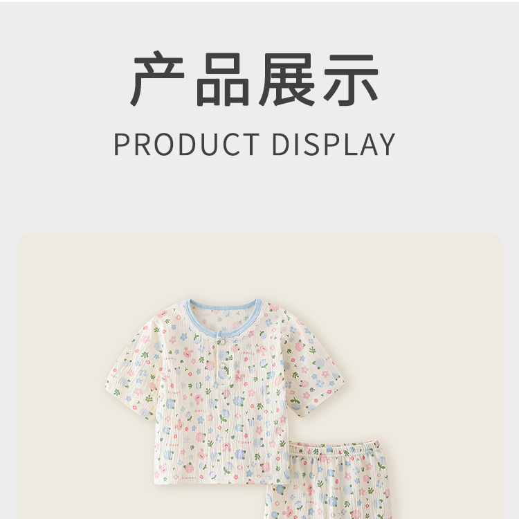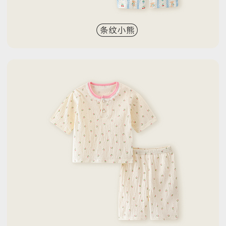여름 얇은 주름진 코튼 아기의 순면 에어컨 의류 세트 분할 잠옷 소년 소녀 7 점 소매 홈 옷스토어 가기