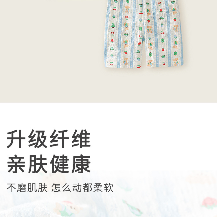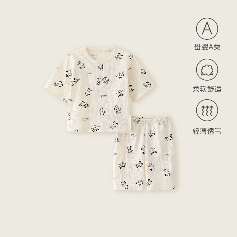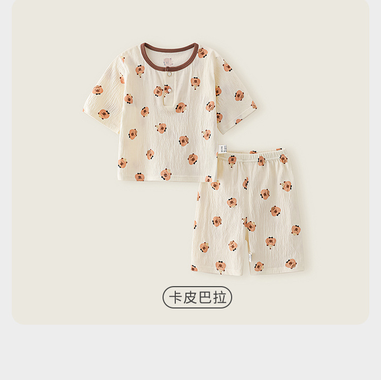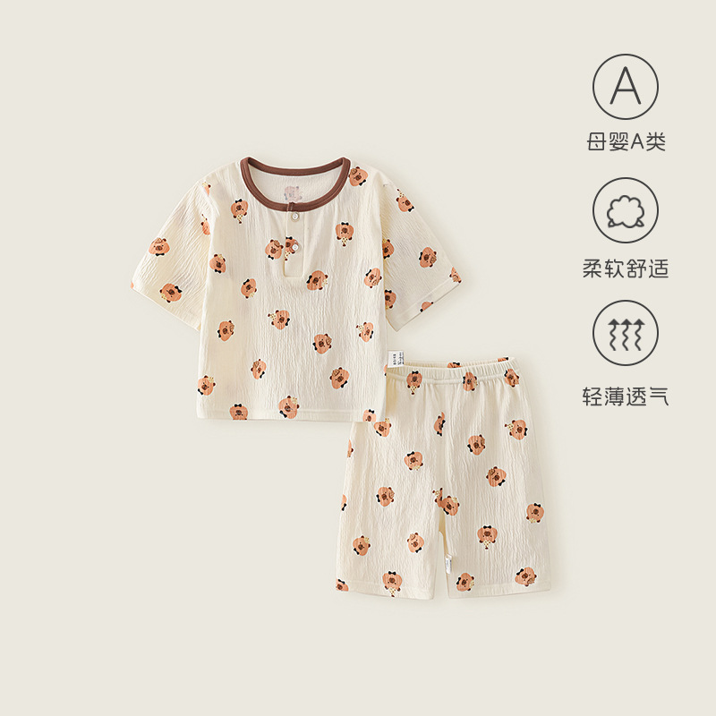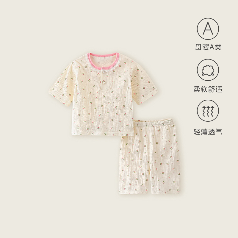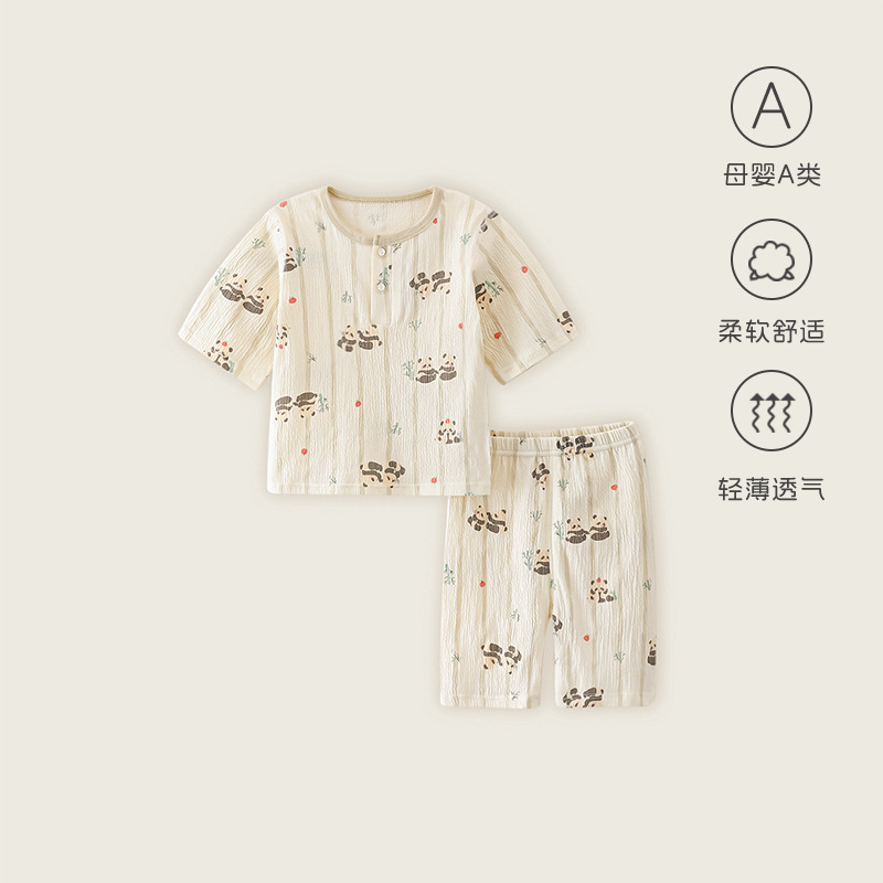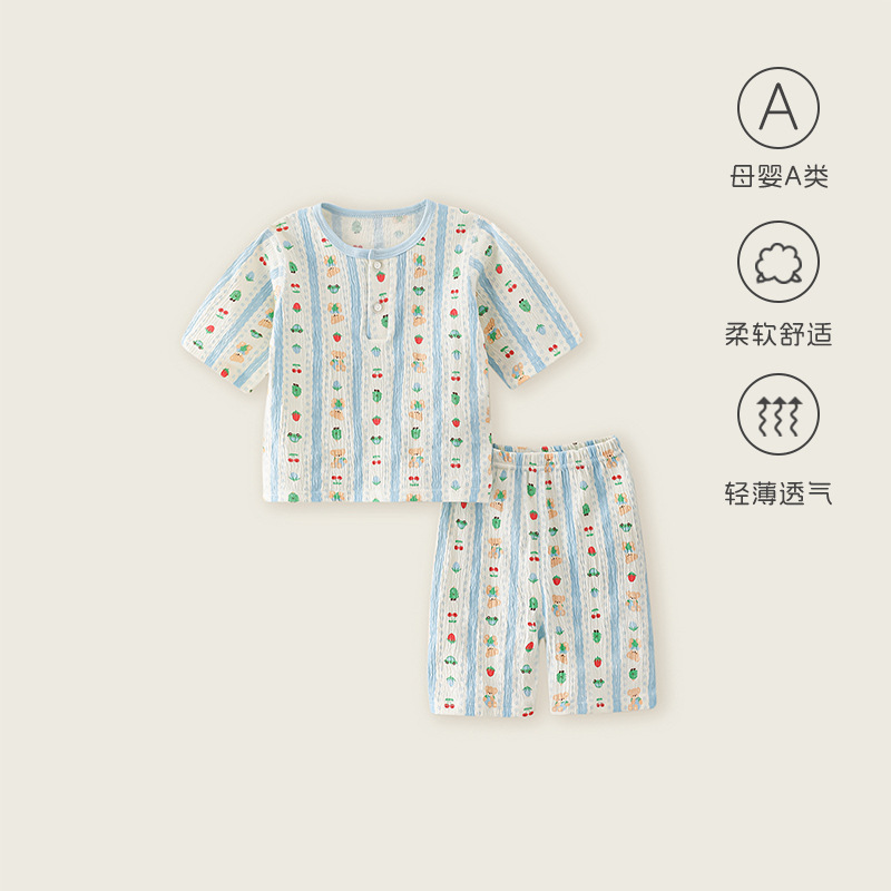 여름 얇은 주름진 코튼 아기의 순면 에어컨 의류 세트 분할 잠옷 소년 소녀 7 점 소매 홈 옷스토어 가기