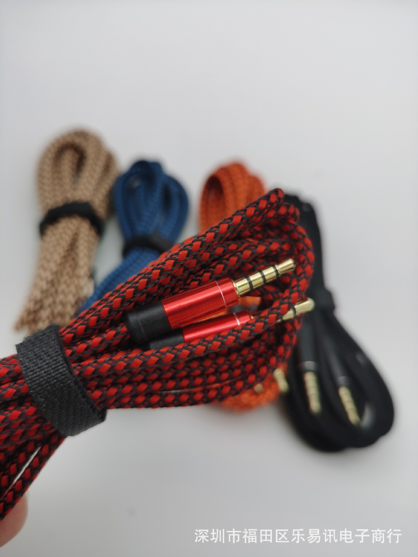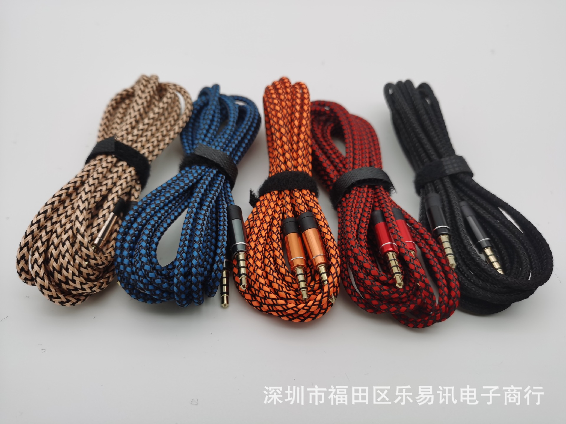 Aux 오디오 케이블 자동차 오디오 스피커 3.5mm 더블 헤드 플러그 컴퓨터 휴대 전화 컬러 꼰 어댑터 오디오 케이블