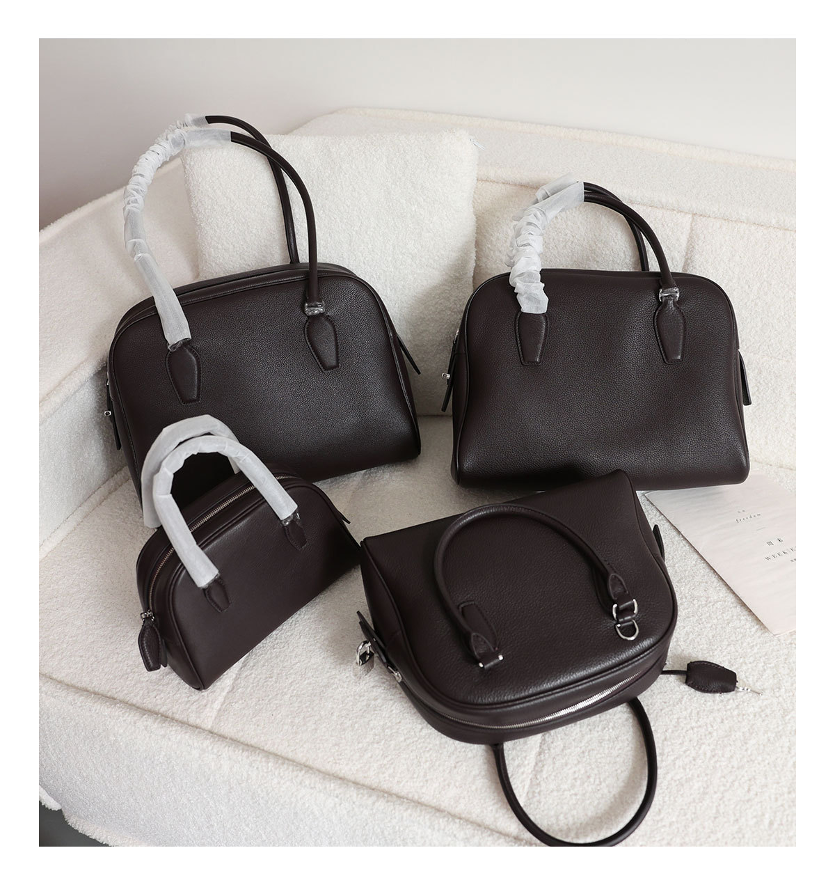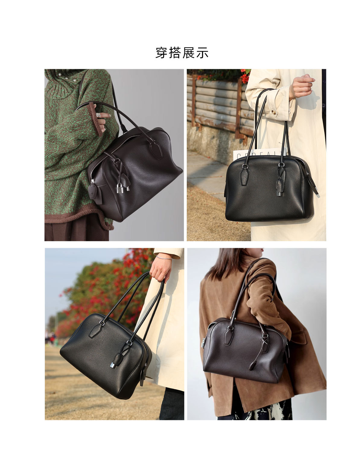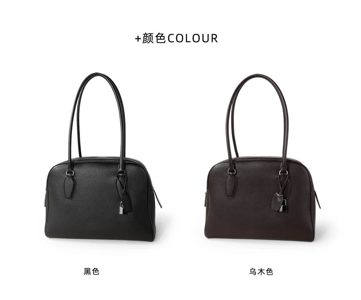 2025 새로운 1층 소가죽 대용량 볼링 가방 틈새 디자인 보스턴 백 통근 다용도 여성용 가방스토어 가기