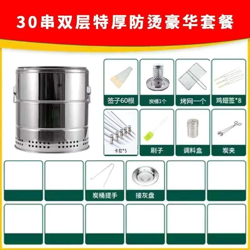 • 대형 이중 단열 및 화상 방지 럭셔리 패키지 - 꼬치 30개 구이