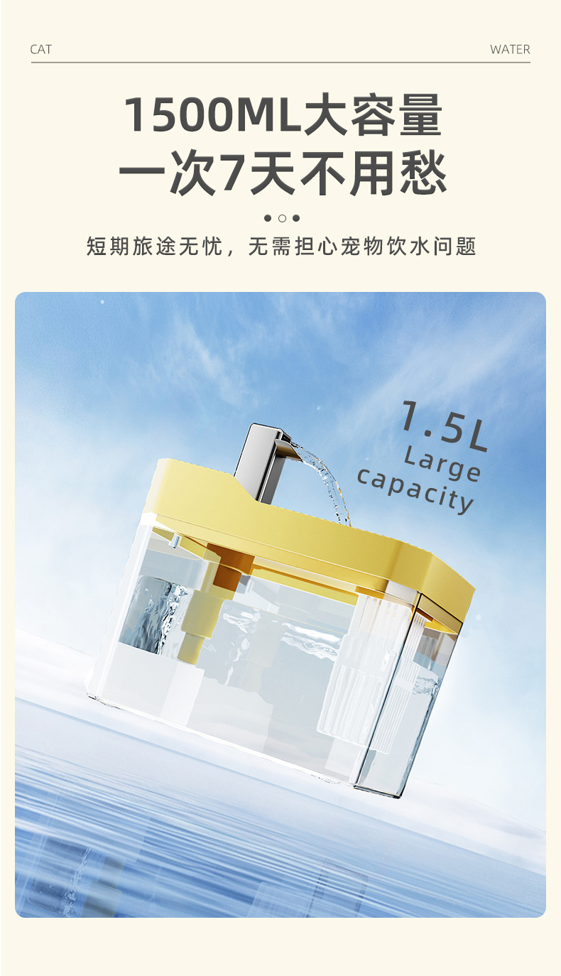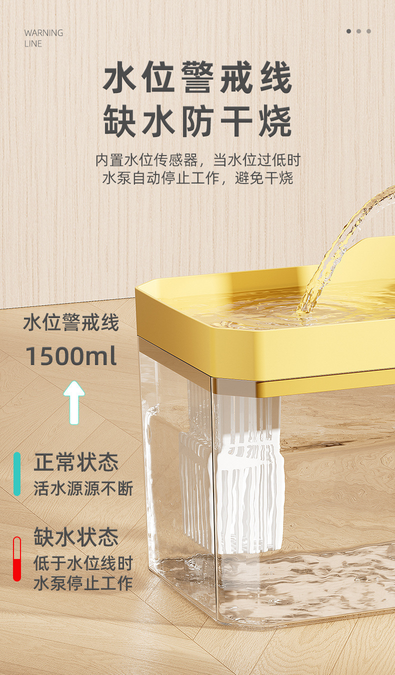 本产品需一直插电使用,相比外置锂电池类型的饮水器续航更久 更稳定,也无需每天更换充电宝/锂电池。