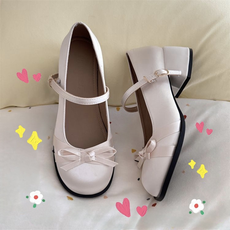 봄 여성을 위한 프렌치 스타일의 슬림한 두꺼운 굽의 작은 가죽 신발, 활용도가 높은 컬리지 스타일의 리본 매듭 메리 제인 슈즈, 브리티시 스타일스토어 가기