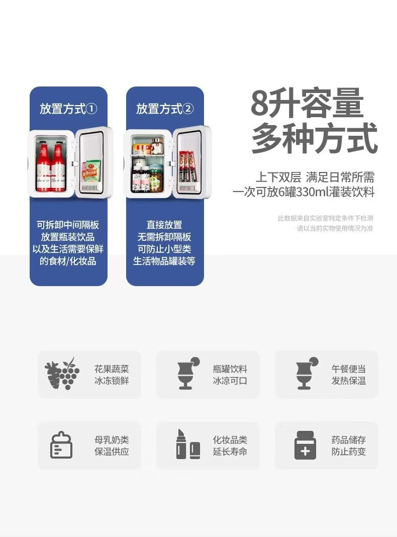 Xia Xin 미니 냉장고 8L 소형 가정용 기숙사 냉동 자동차 가정용 이중 목적 학생 자동차 냉장 및 신선 유지 냉동고스토어 가기