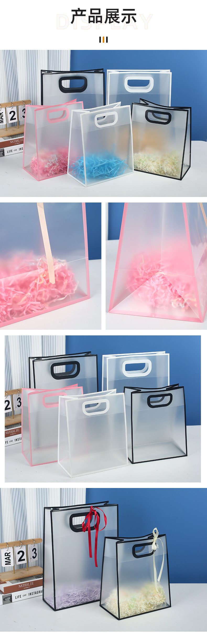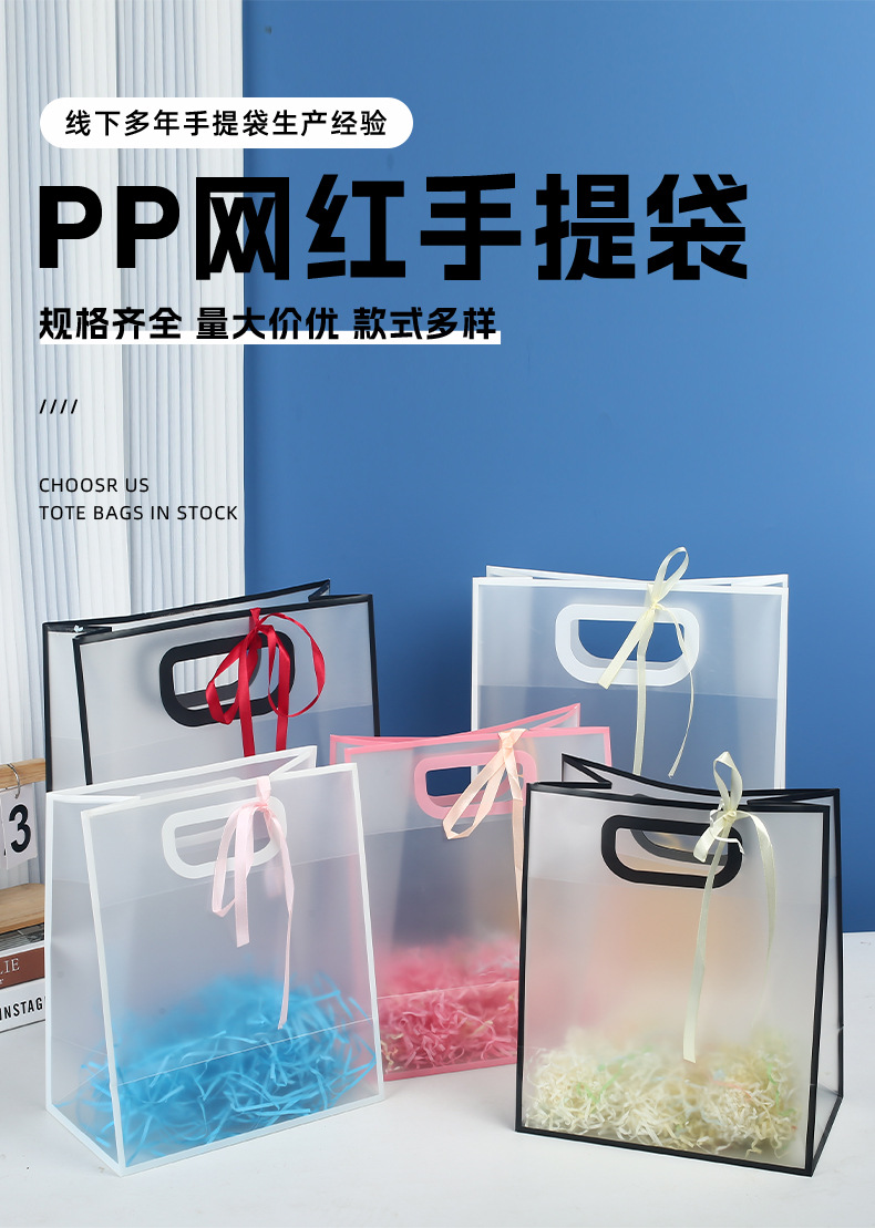 투명 pp 인터넷 연예인 젖빛 핸드백 선물 포장 가방 결혼식 사탕 플라스틱 핸드백 사용자 정의 인쇄 로고스토어 가기