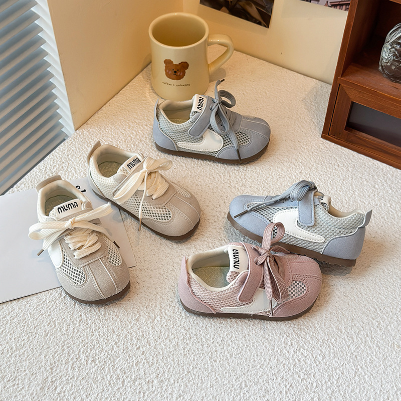 한국 어린이 운동화 레트로 봄과 여름 소년 부드러운 솔 메쉬 캐주얼 신발 벨크로 소녀 통기성 어린이 신발스토어 가기