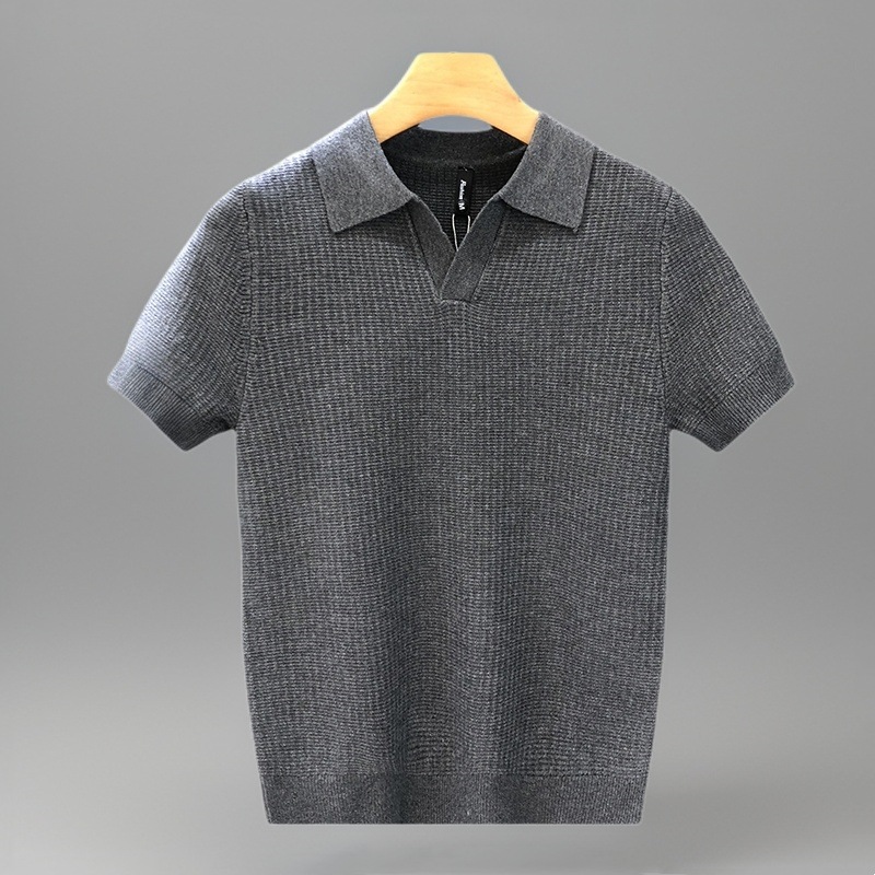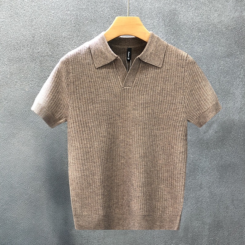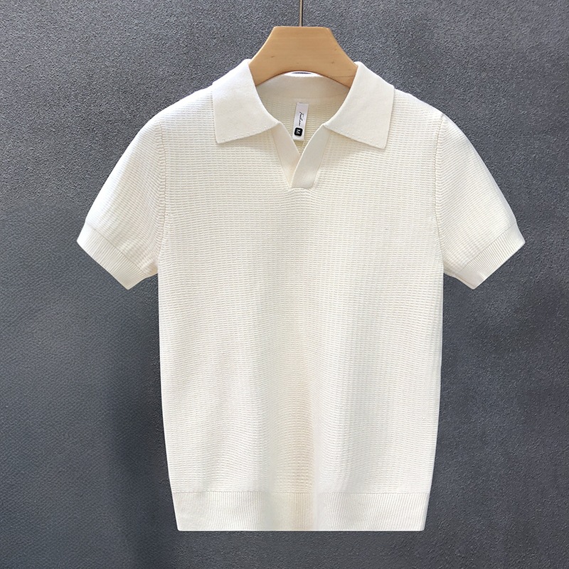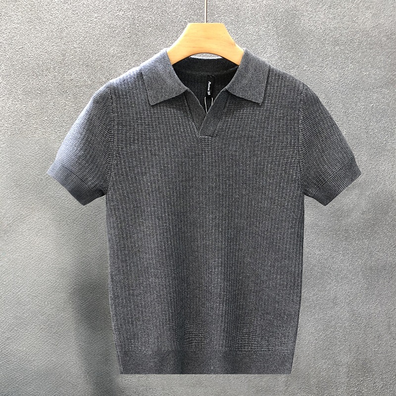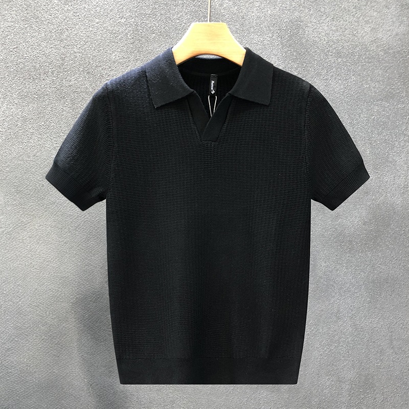 크로스보더 솔리드 컬러 폴로 셔츠 남성 여름 얇은 니트 라펠 티셔츠 하이 엔드 캐주얼 질감 통기성 폴로 셔츠