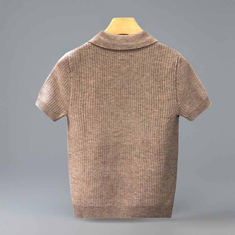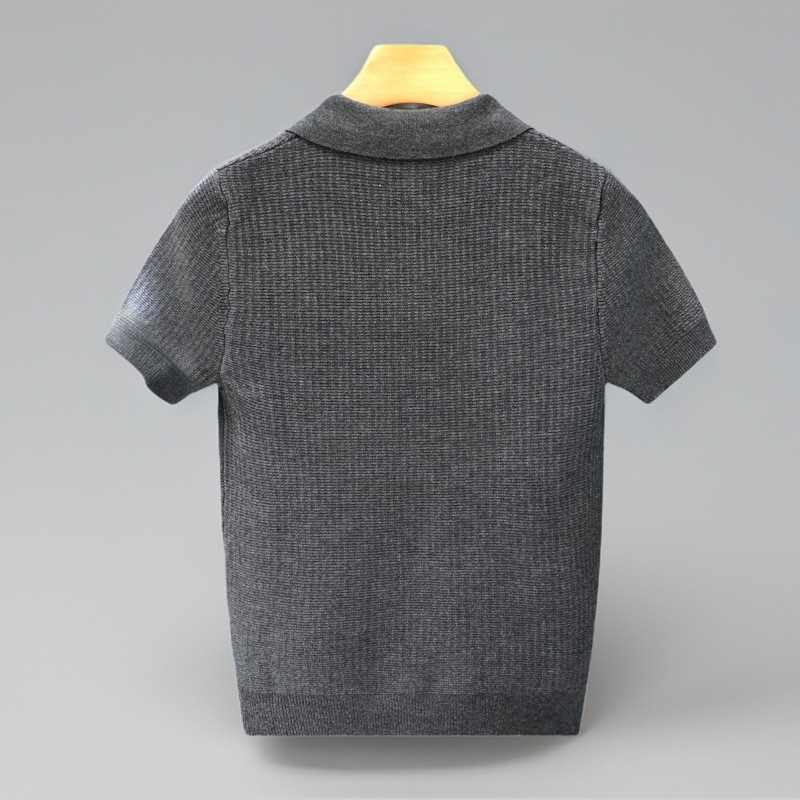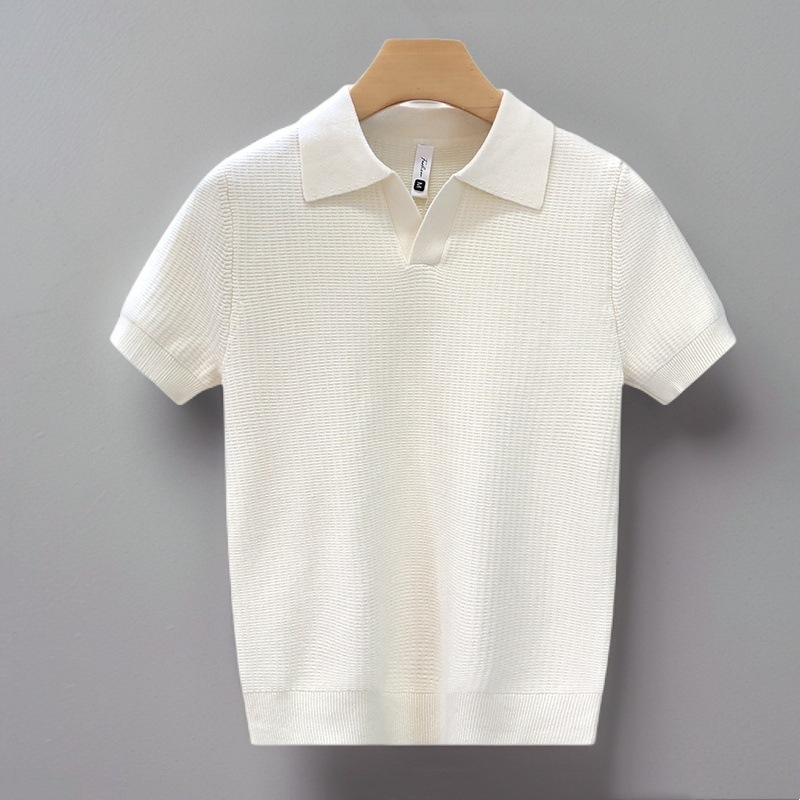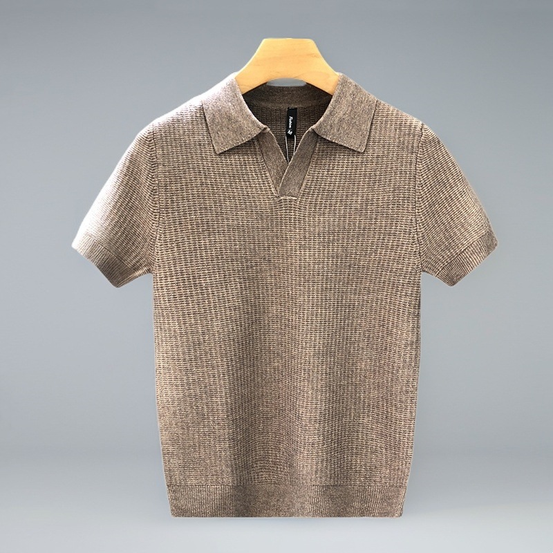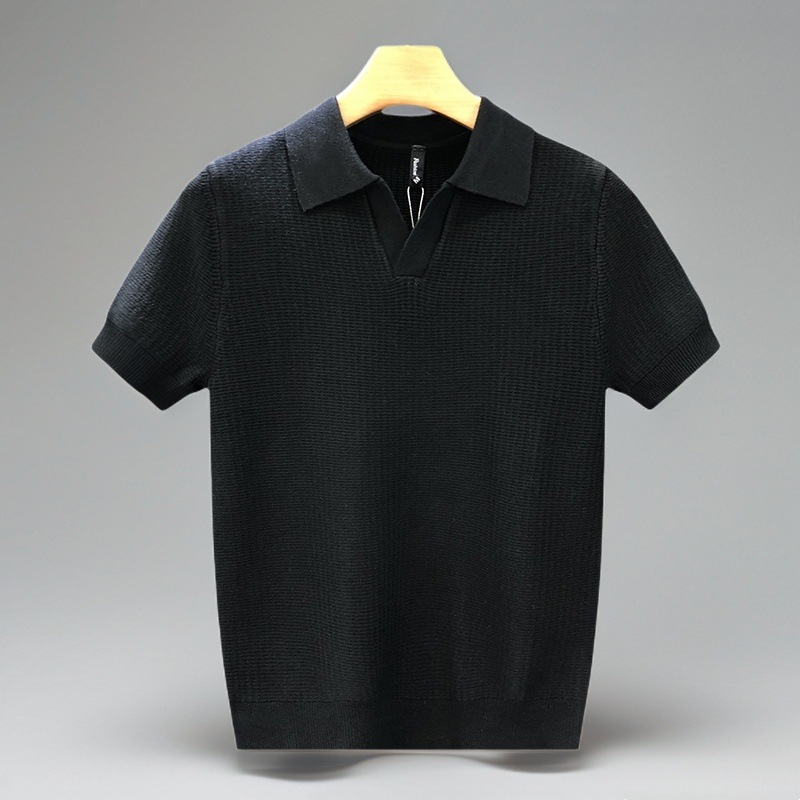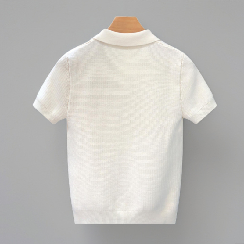 크로스보더 솔리드 컬러 폴로 셔츠 남성 여름 얇은 니트 라펠 티셔츠 하이 엔드 캐주얼 질감 통기성 폴로 셔츠