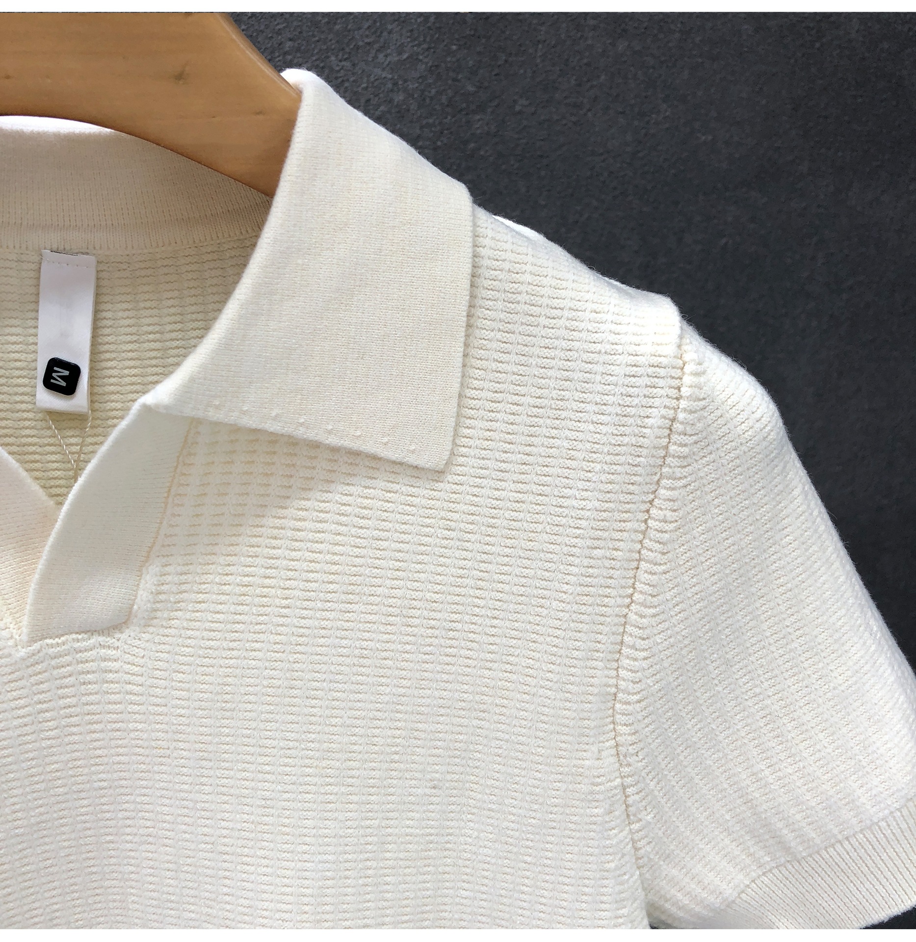 短袖POLO衫男夏季薄款针织翻领T恤高级感休闲纹理透气马球衫上衣