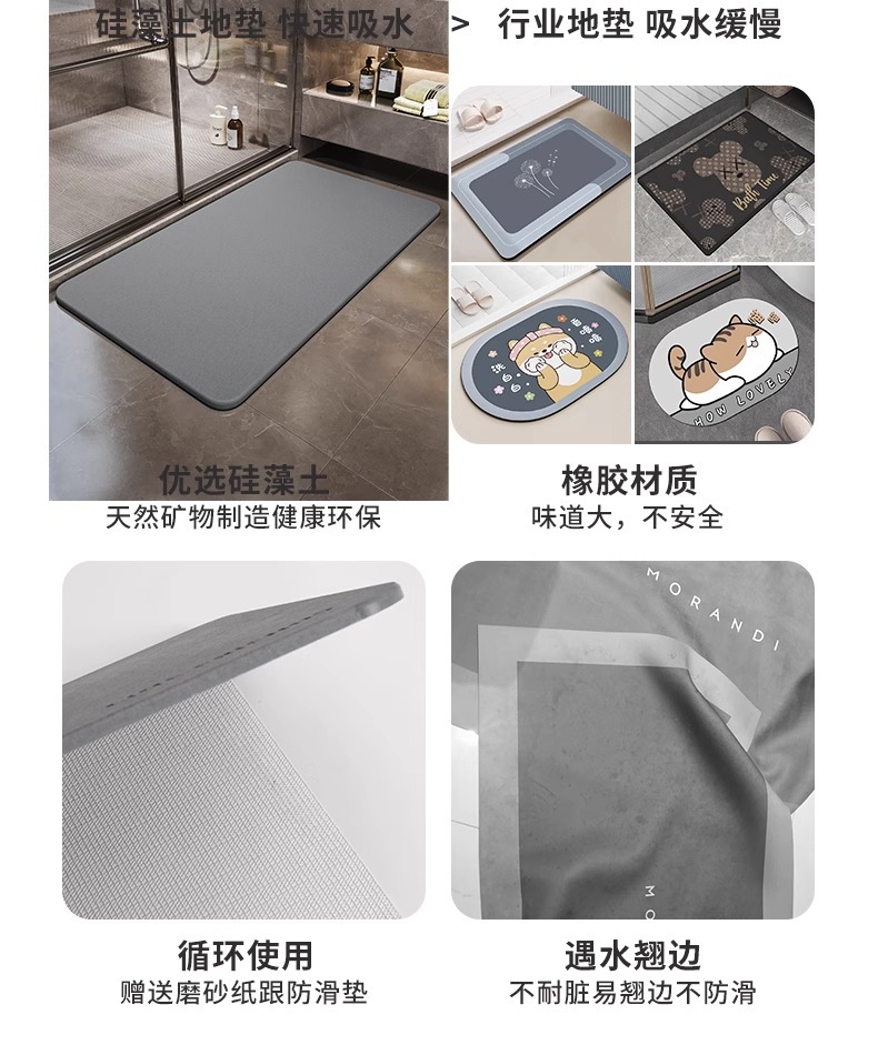 하드 규조토 진흙 흡수 매트 욕실 문 욕실 미끄럼 방지 바닥 매트 화장실 흡수 매트 가정용 속건성 발 매트스토어 가기