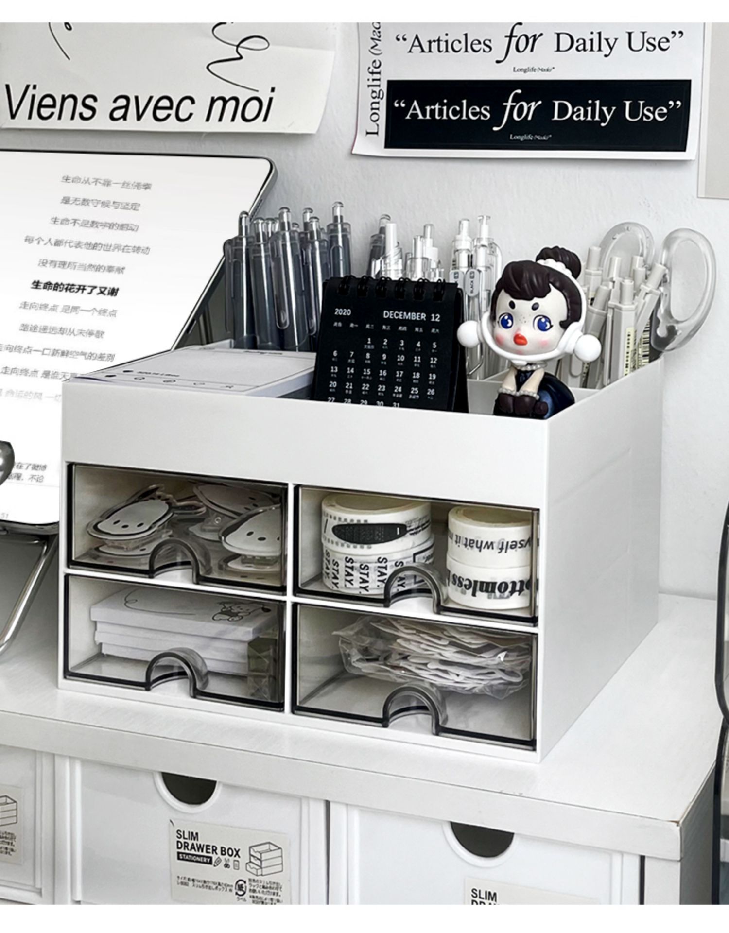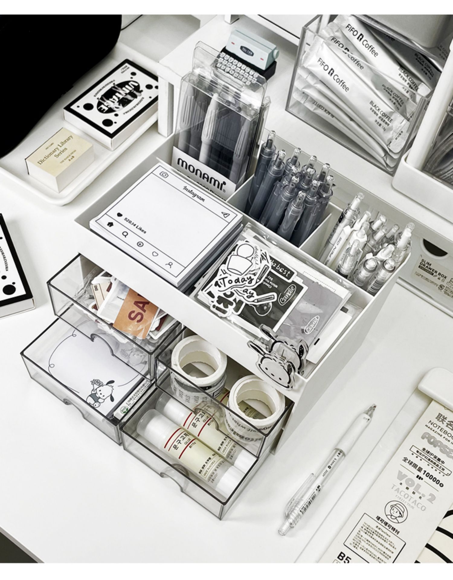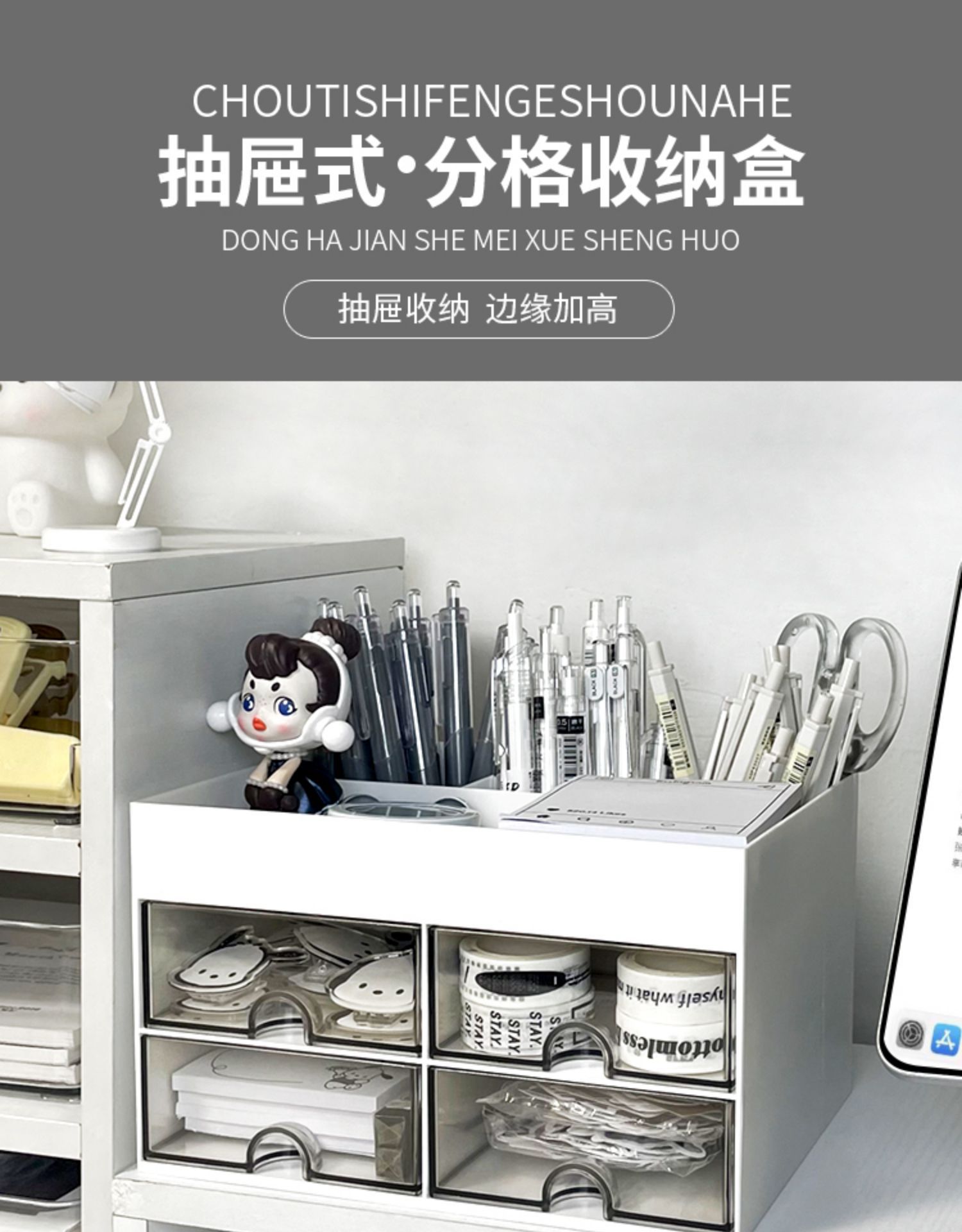 서랍형 데스크탑 수납함 학생용 펜홀더 사무실 직장인용 선반 아크릴 책상 문구 정리함