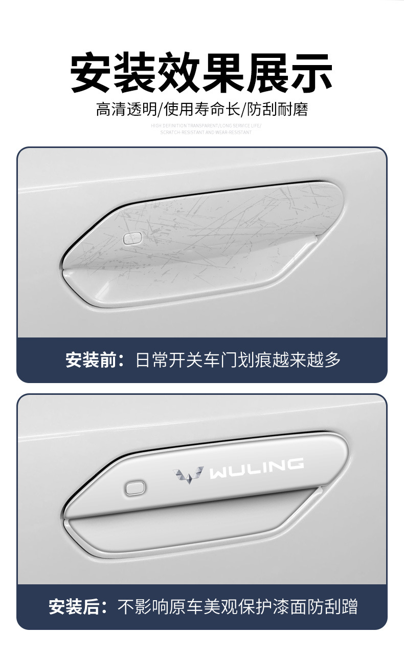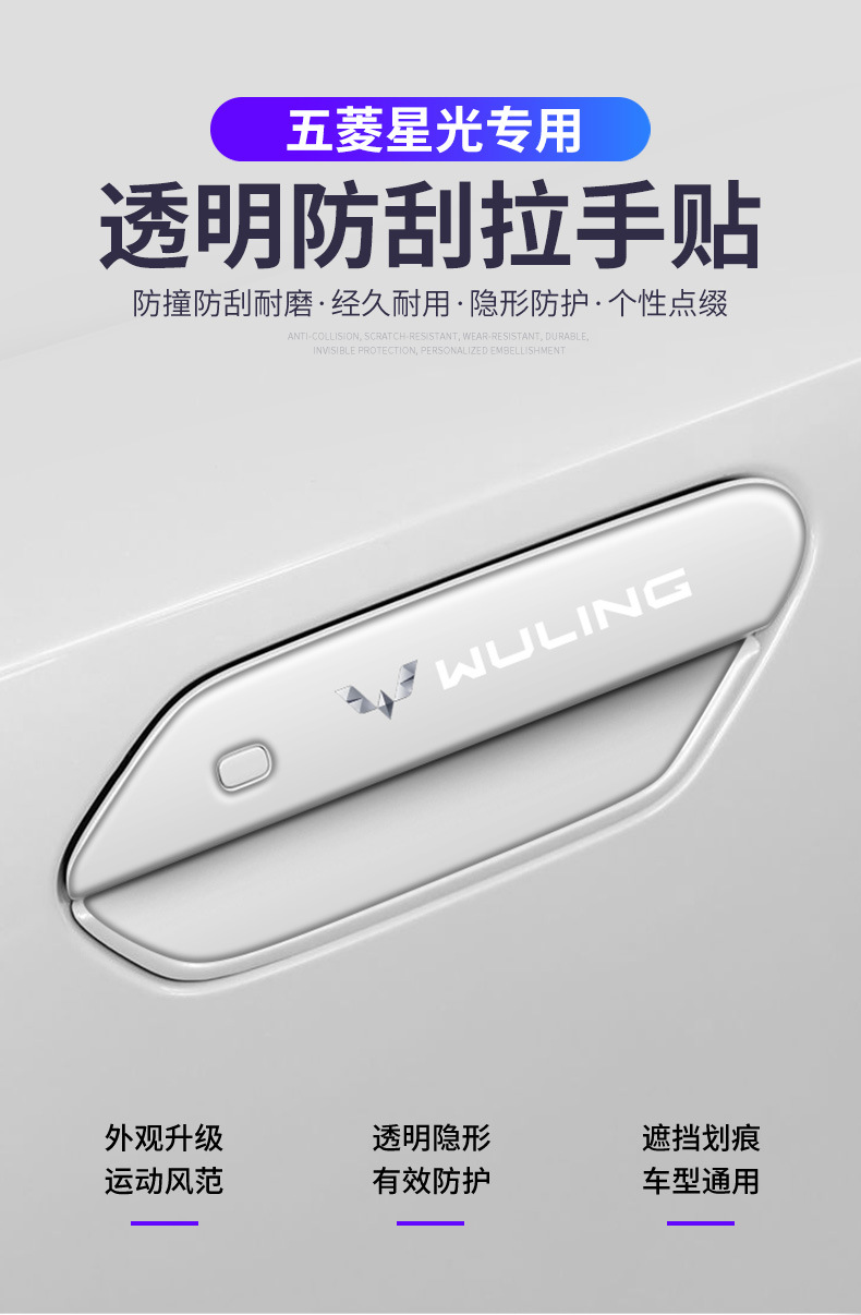 Wuling Starlight 특수 도어 핸들 긁힘 방지 스티커, 도어 핸들 스티커, 긁힘 방지 및 충돌 방지 장식 수정 스티커