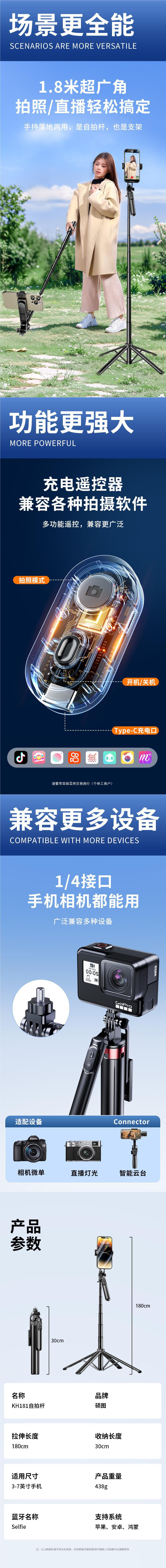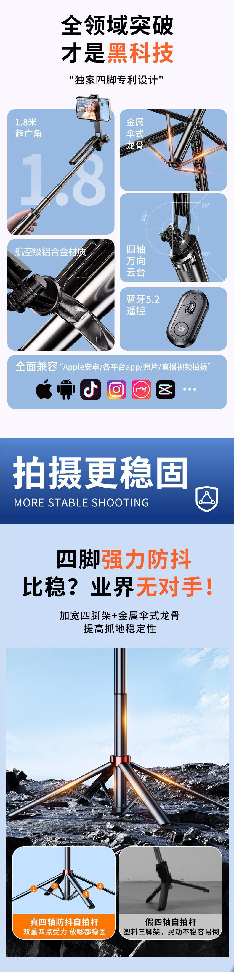 • 1.8m [알루미늄 합금 4각대 + 라이브 근육 조명] 듀얼 카메라 위치 ▲ 4축 안정화된 촬영 ▲ 20m 충전 리모콘.