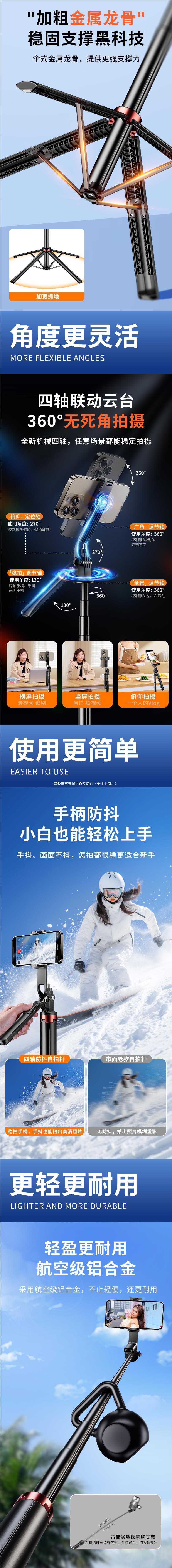 • 2.2m [알루미늄 합금 4각대 + 라이브 근육 조명] 듀얼 카메라 위치 ▲ 4축 안정화된 촬영 ▲ 20m 충전 리모콘