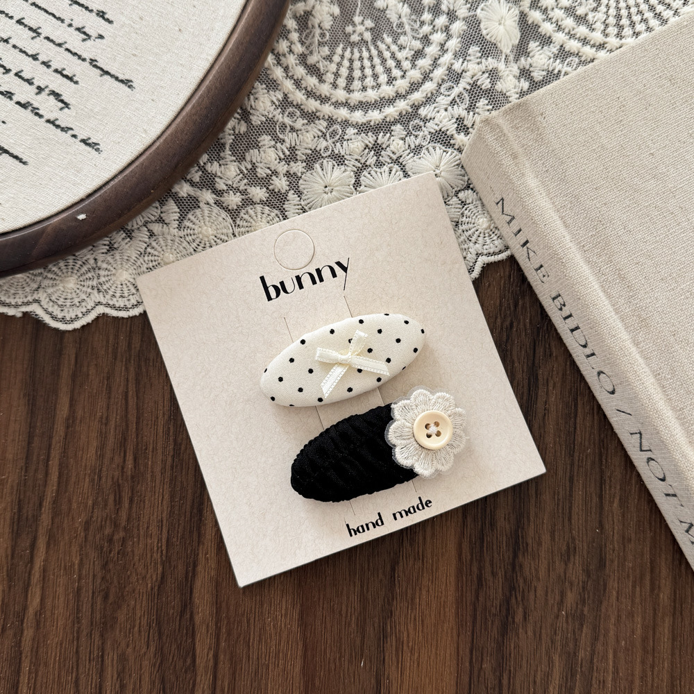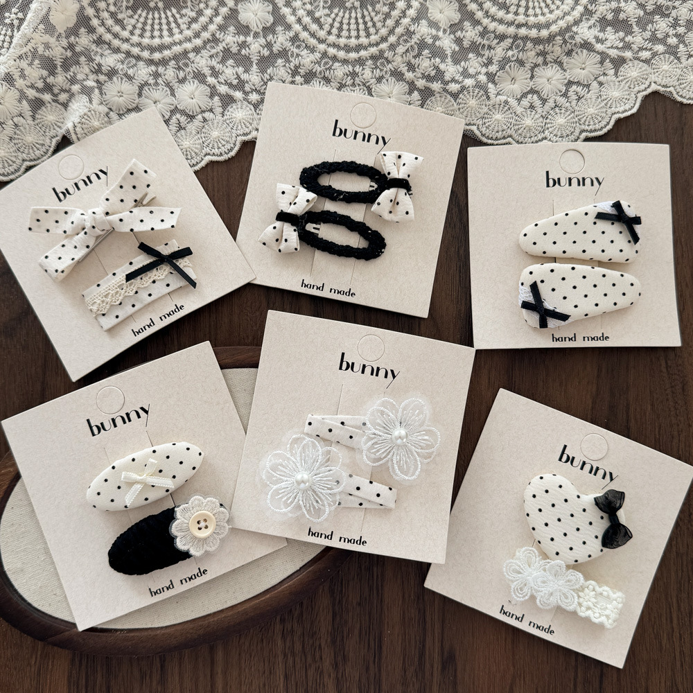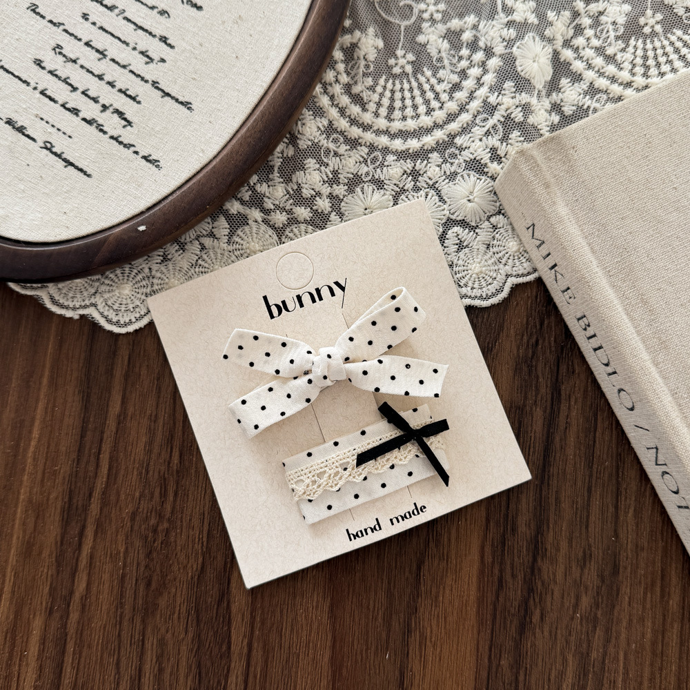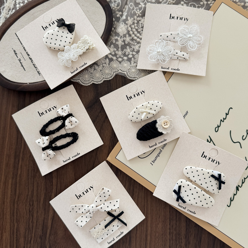 흑백 폴카 도트 레이스 활 헤어핀 새로운 소녀 헤어 핀 달콤한 쿨 어린이 헤어 액세서리 사이드 브로큰 헤어핀 헤어 액세서리