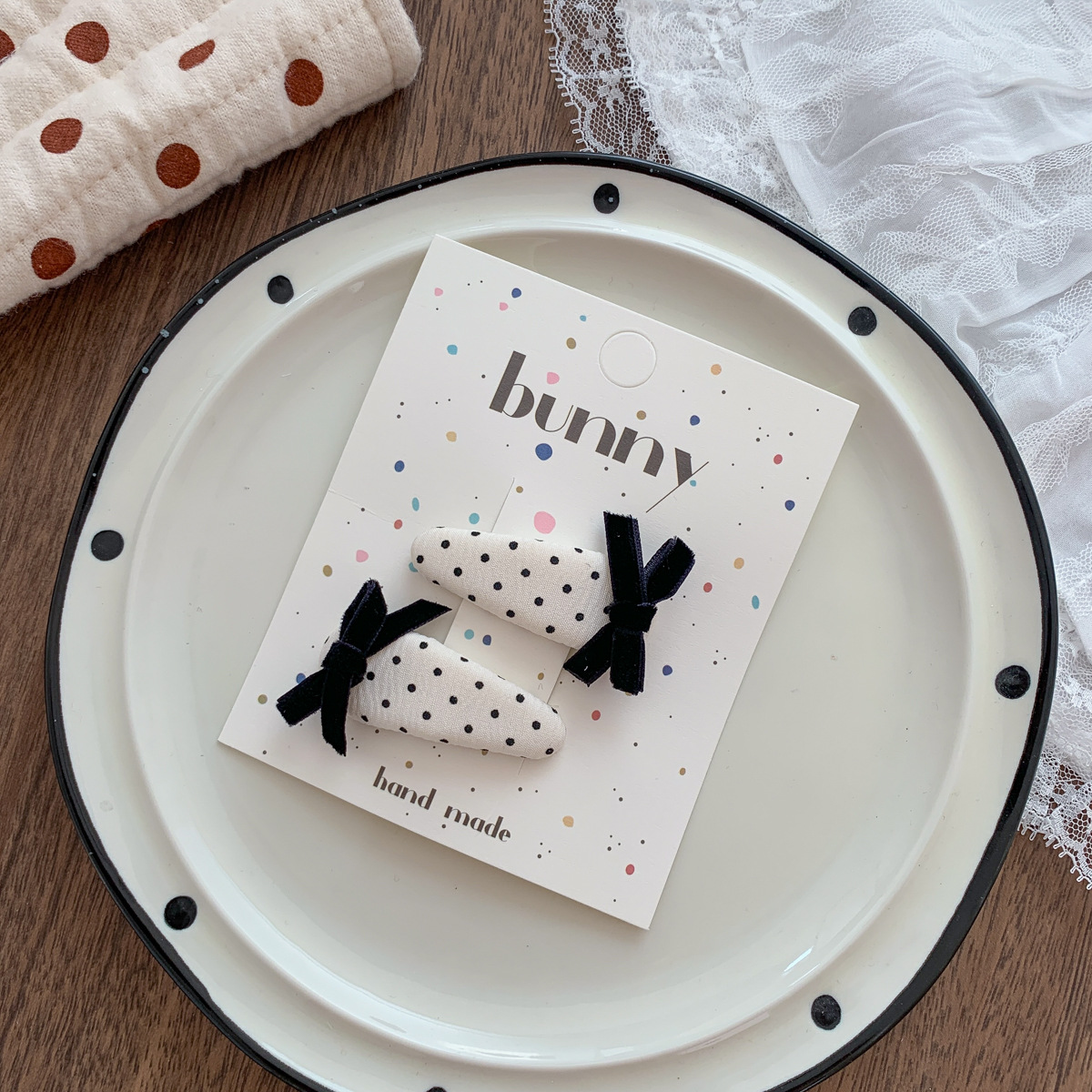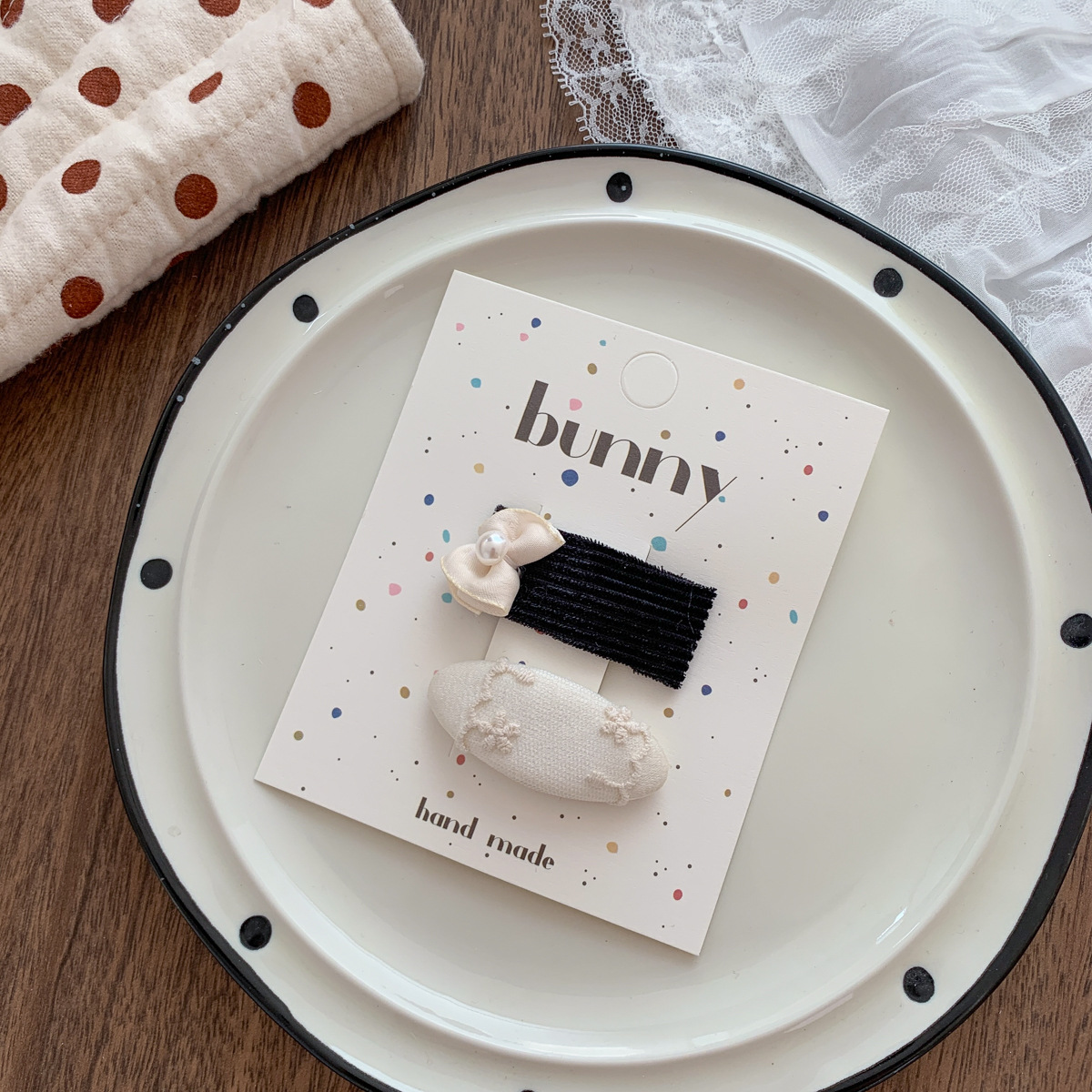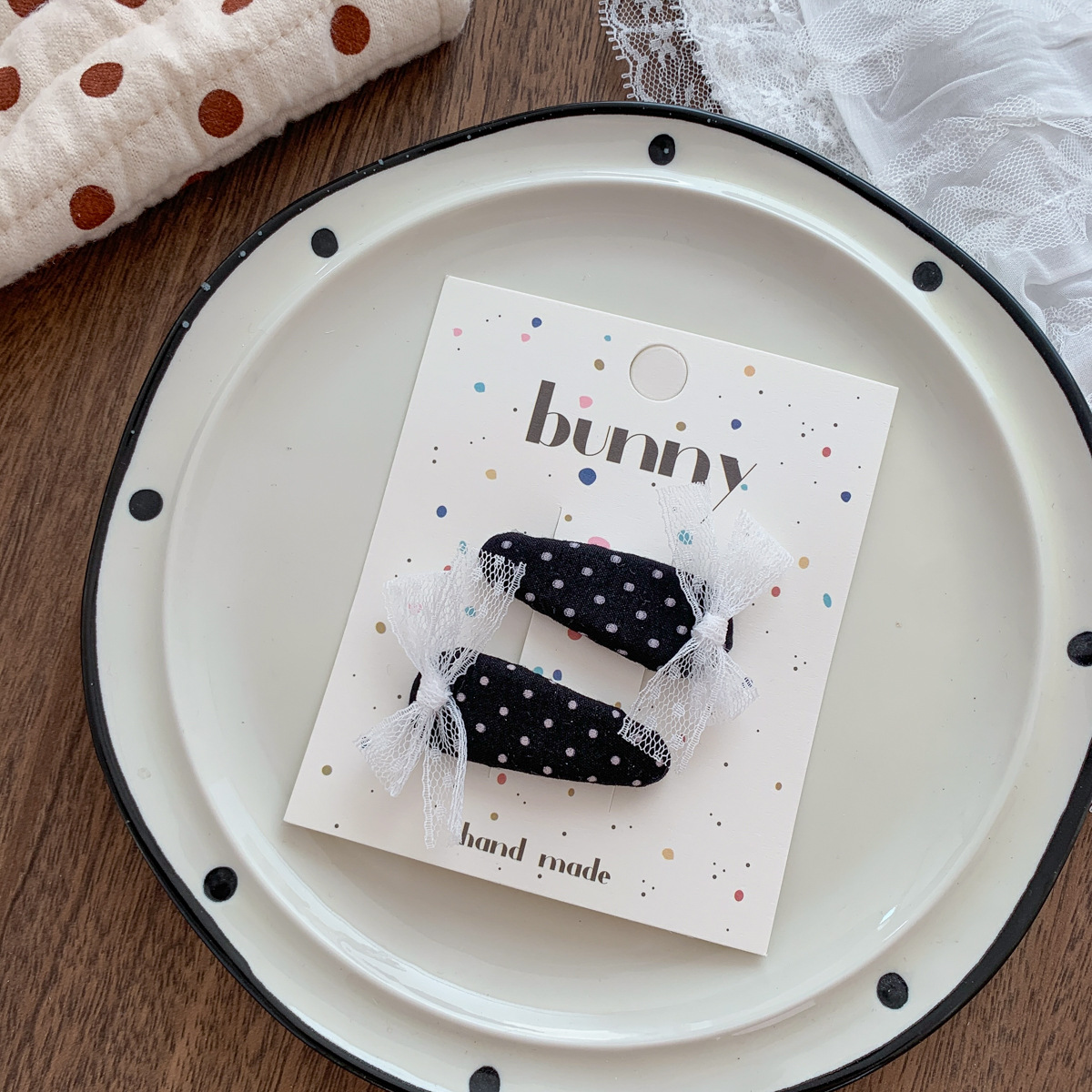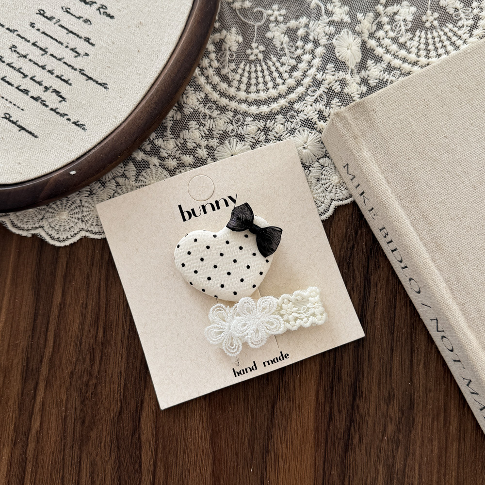 흑백 폴카 도트 레이스 활 헤어핀 새로운 소녀 헤어 핀 달콤한 쿨 어린이 헤어 액세서리 사이드 브로큰 헤어핀 헤어 액세서리