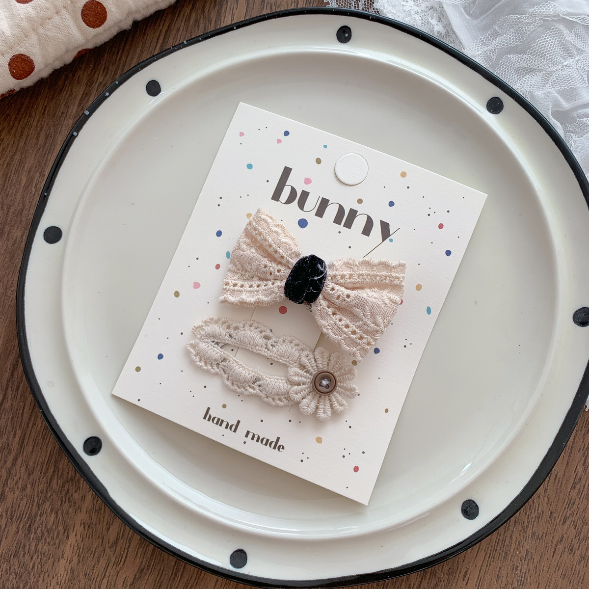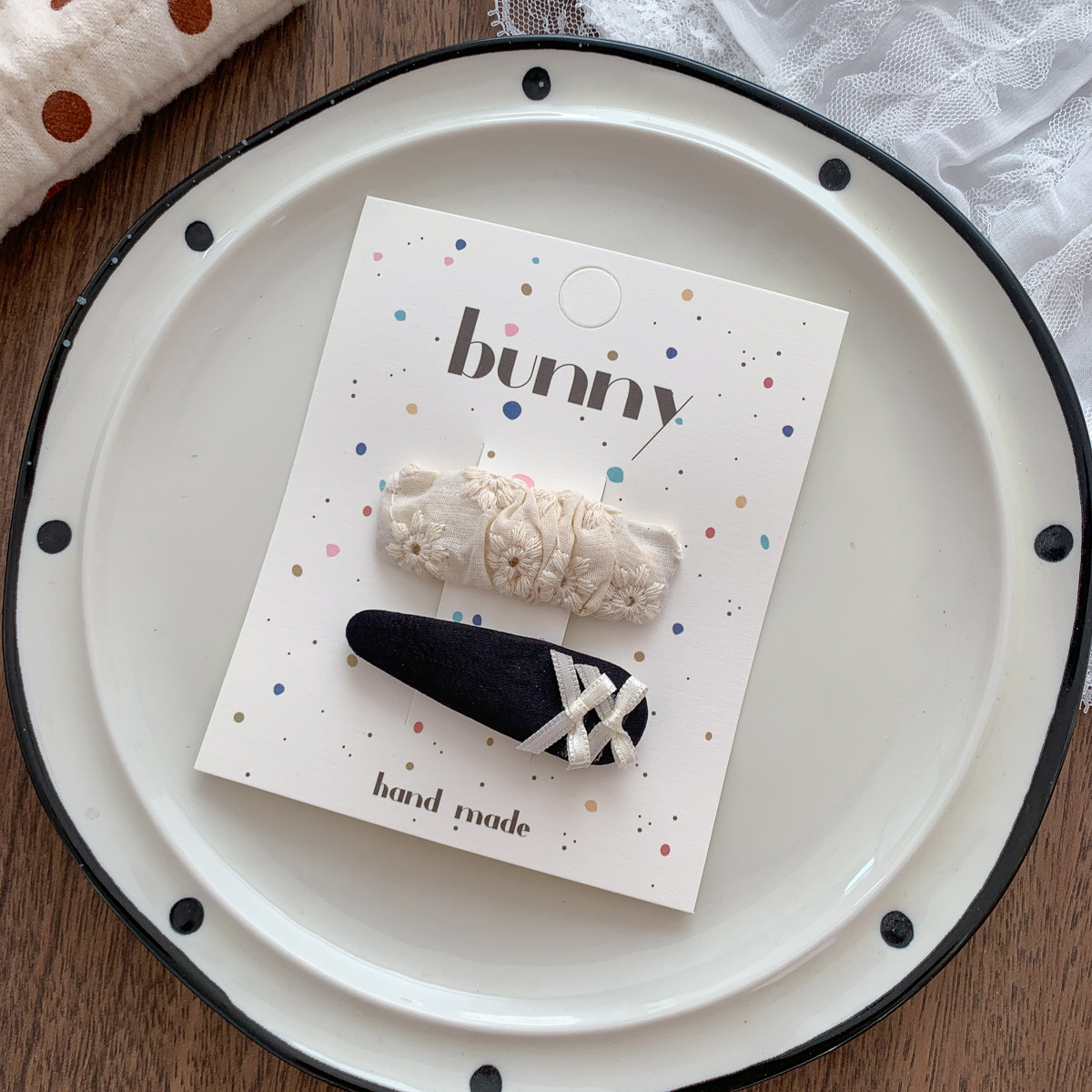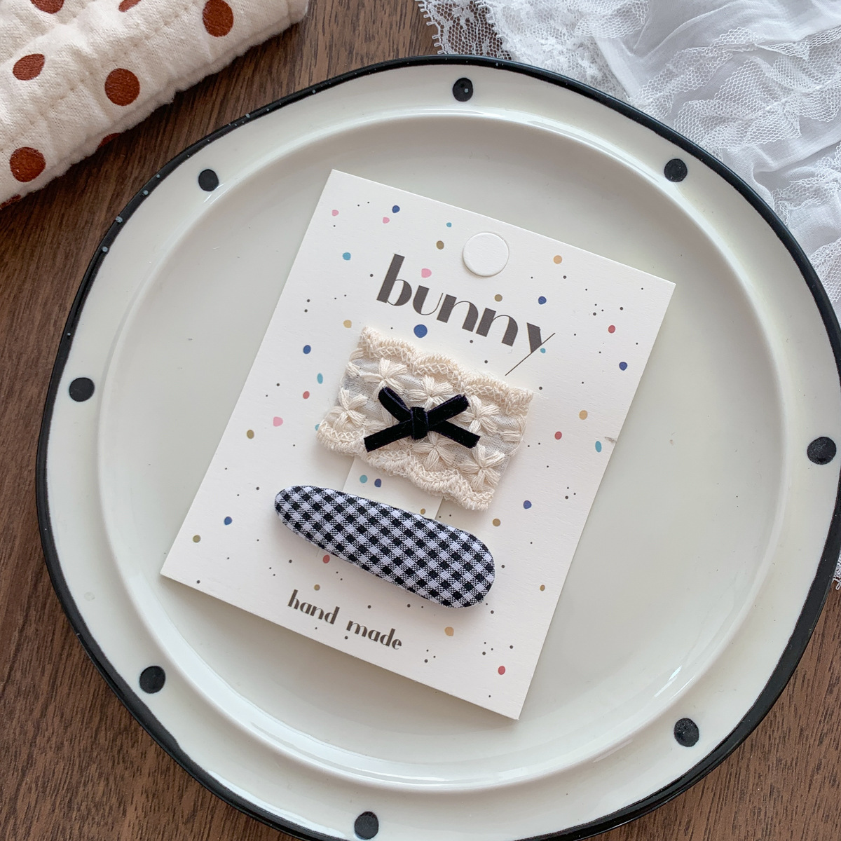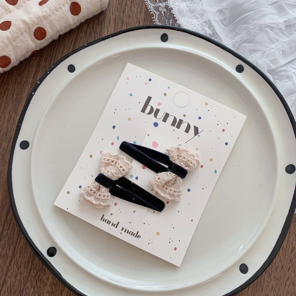 흑백 폴카 도트 레이스 활 헤어핀 새로운 소녀 헤어 핀 달콤한 쿨 어린이 헤어 액세서리 사이드 브로큰 헤어핀 헤어 액세서리