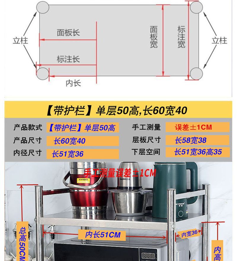 마이크로 웨이브 오븐 랙 스토리지 랙 두꺼운 주방 카운터 탑 울타리 단일 레이어 오븐 조미료 냄비 스토리지 랙 1 층