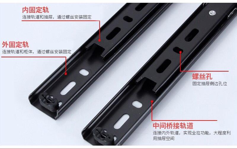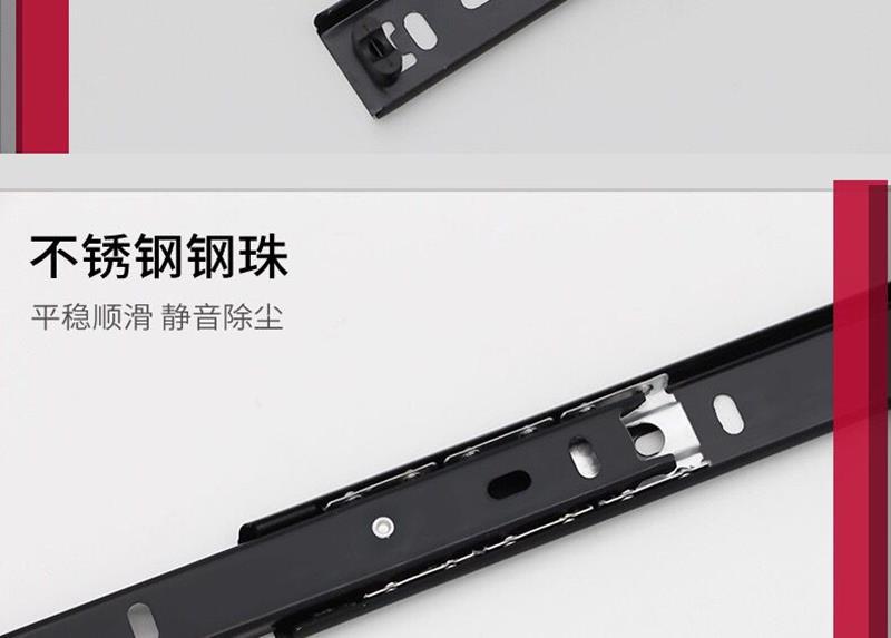 컴퓨터 책상 측면 장착 키보드 트레이 2섹션 슬라이드 레일 25mm 트랙 데스크 무음 볼 서랍 2섹션 레일