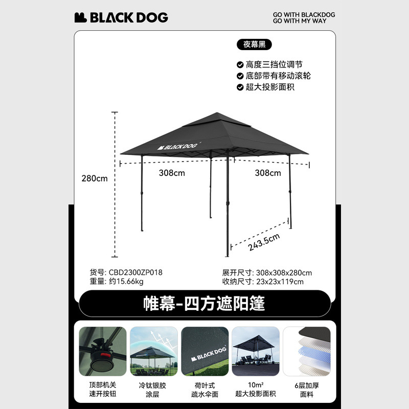 BLACKDOG 야외 차양 사각형 캐노피 실버 코팅 태양 보호 및 비 보호 휴대용 초대형 캠핑 우산 커튼