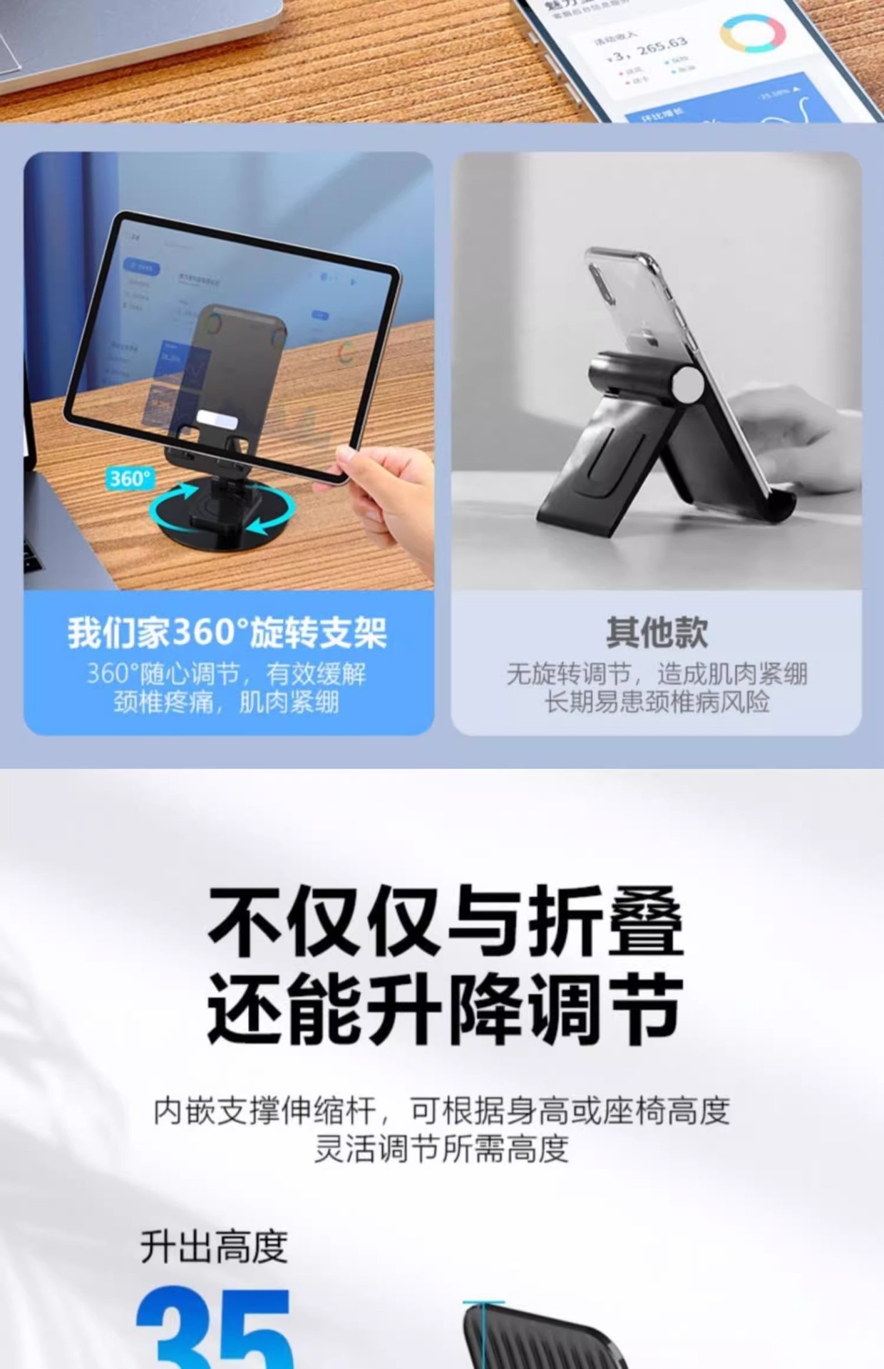 휴대폰 홀더 데스크탑 회전식 접이식 휴대폰 홀더 태블릿 지원 스탠드 게으른 태블릿 컴퓨터 라이브 비디오스토어 가기