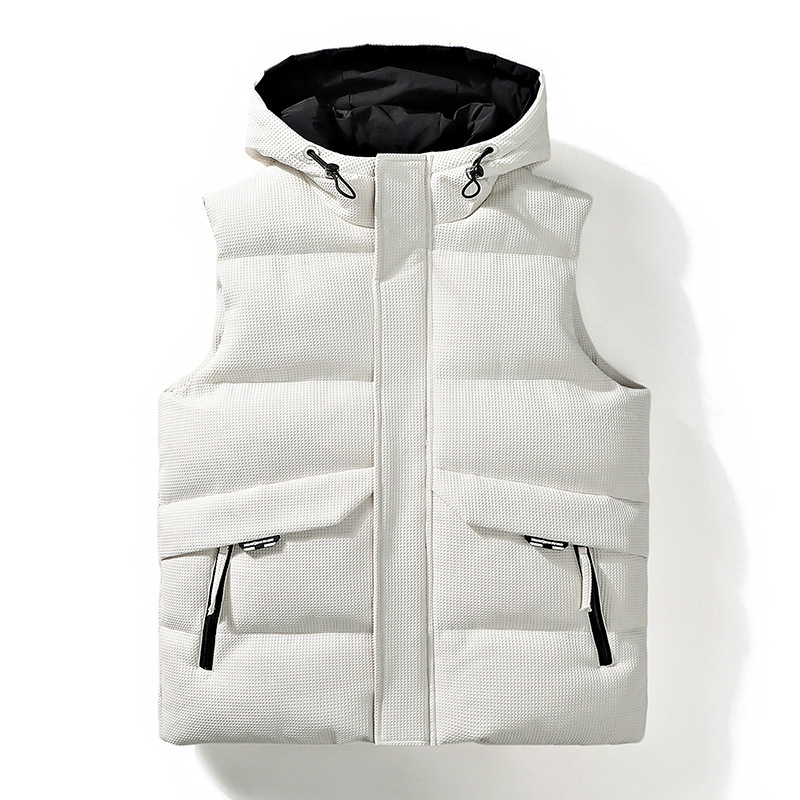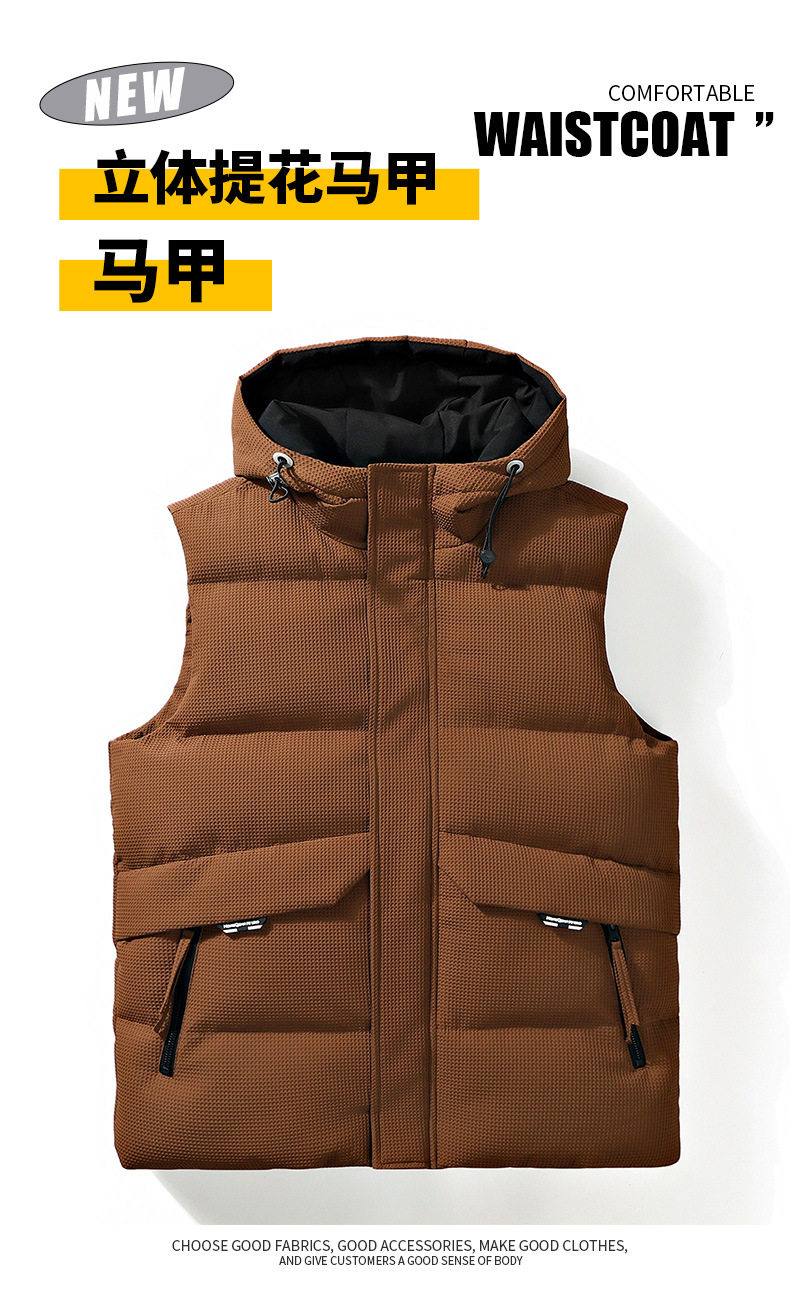 가을 겨울 남성용 조끼 새로운 스타일 자카드 루즈 후드 조끼 따뜻한 양복 조끼 코튼 코트 커플 스타일 세련된 다용도 재킷