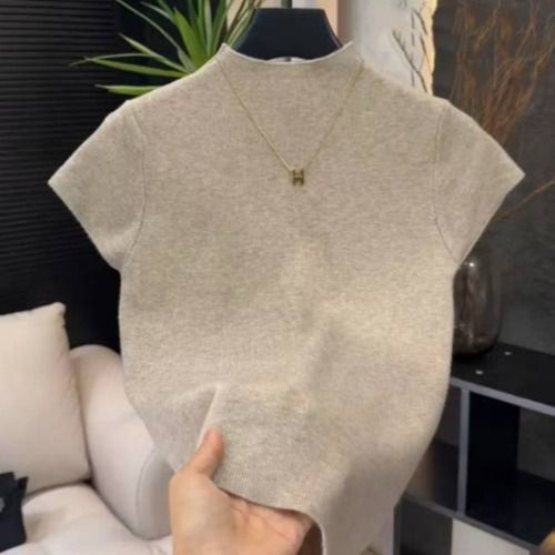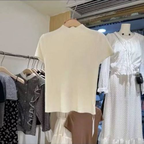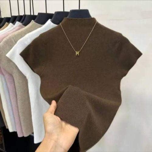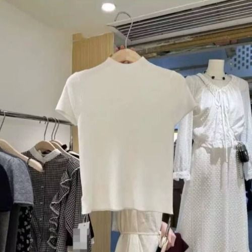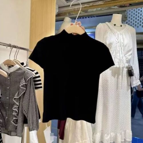 여성용 하프 터틀넥 니트 반팔 탑, 봄 착용, 슬림핏, 여성용 이너 티셔츠 탑스토어 가기