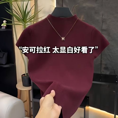 여성용 하프 터틀넥 니트 반팔 탑, 봄 착용, 슬림핏, 여성용 이너 티셔츠 탑