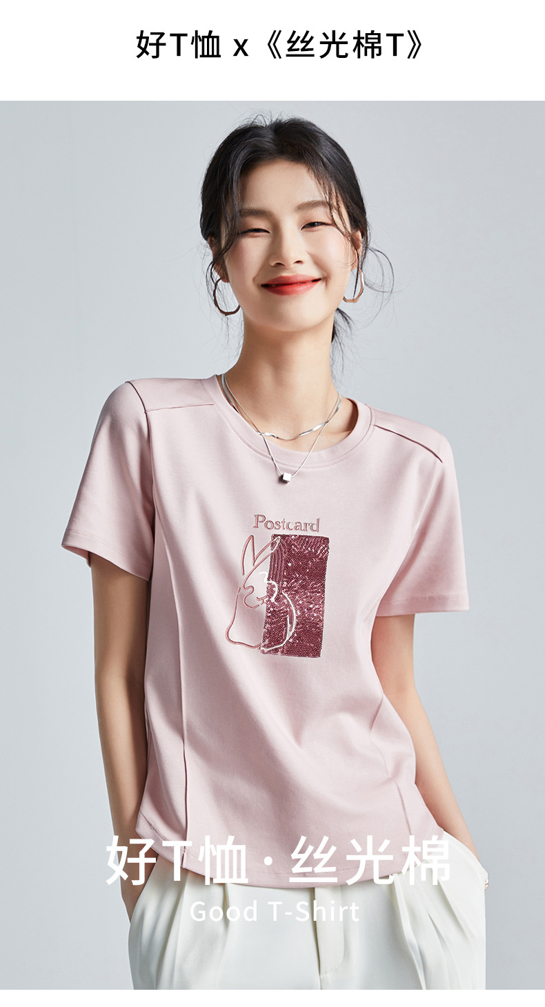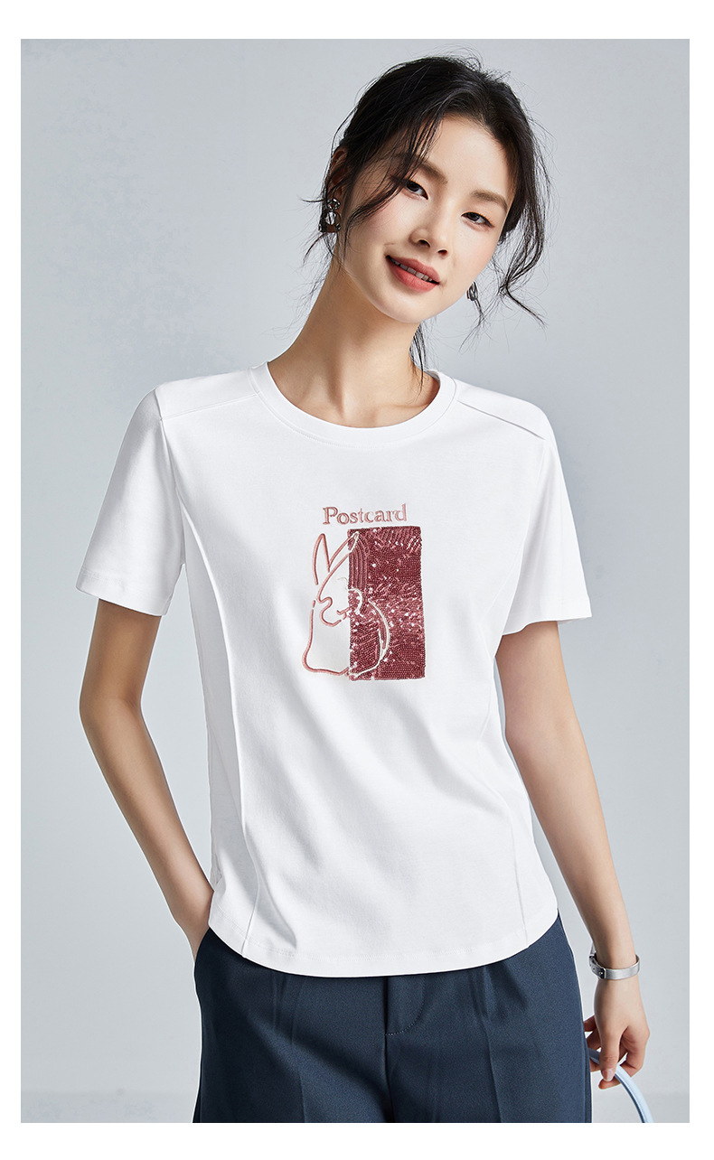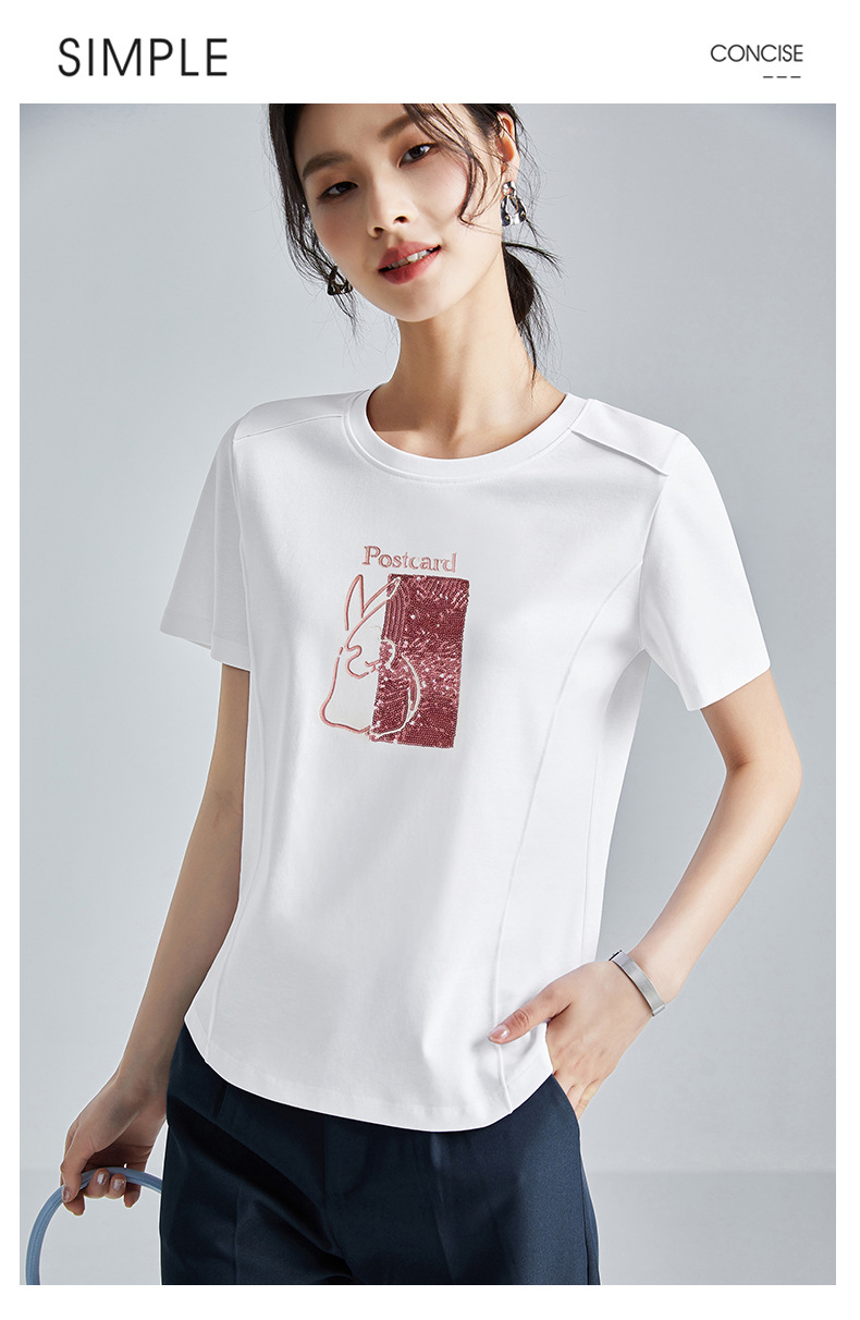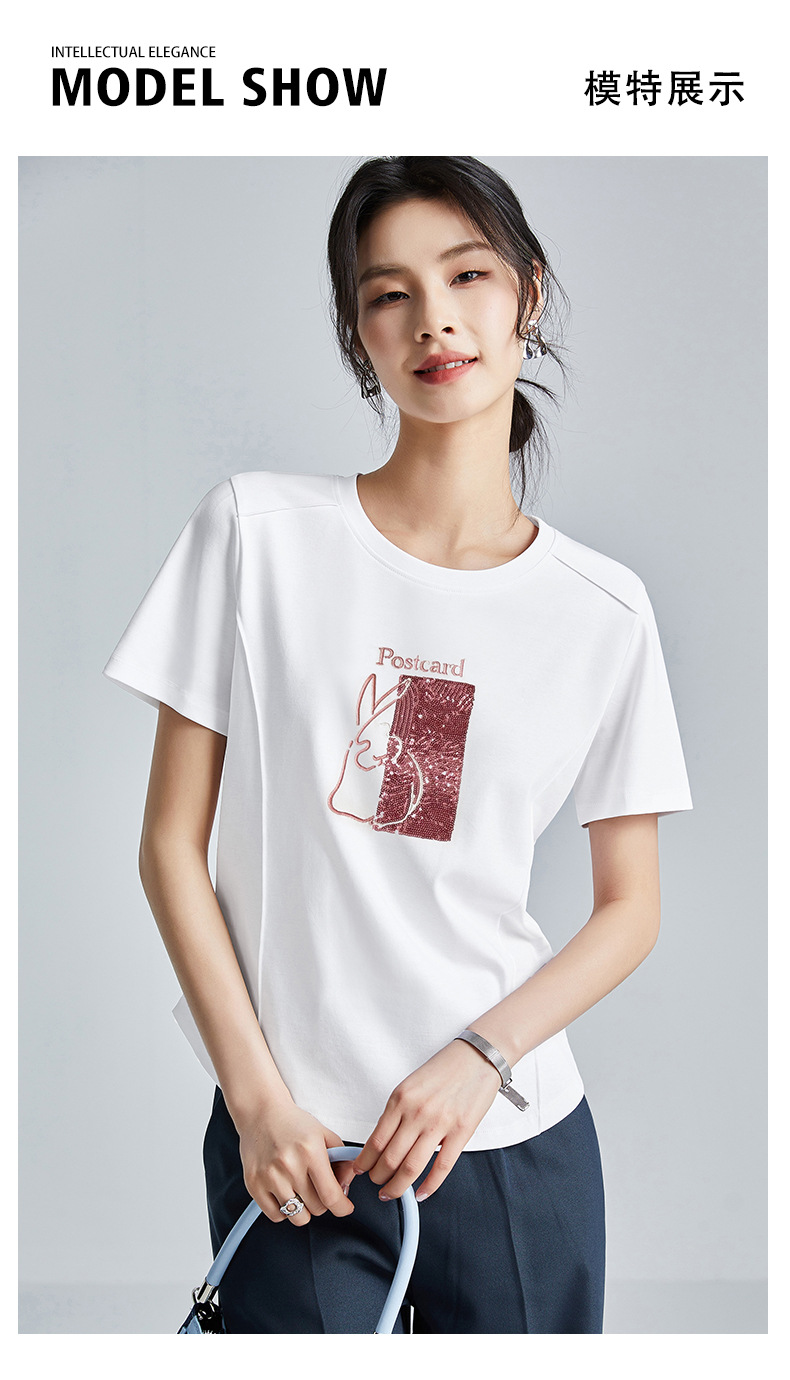 시원한 실크광택 코튼 프렌치 스타일 화이트 반팔 티셔츠 여성용 여름 2026 신상 루즈핏 자수 라운드넥 1688 상의스토어 가기