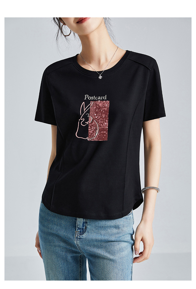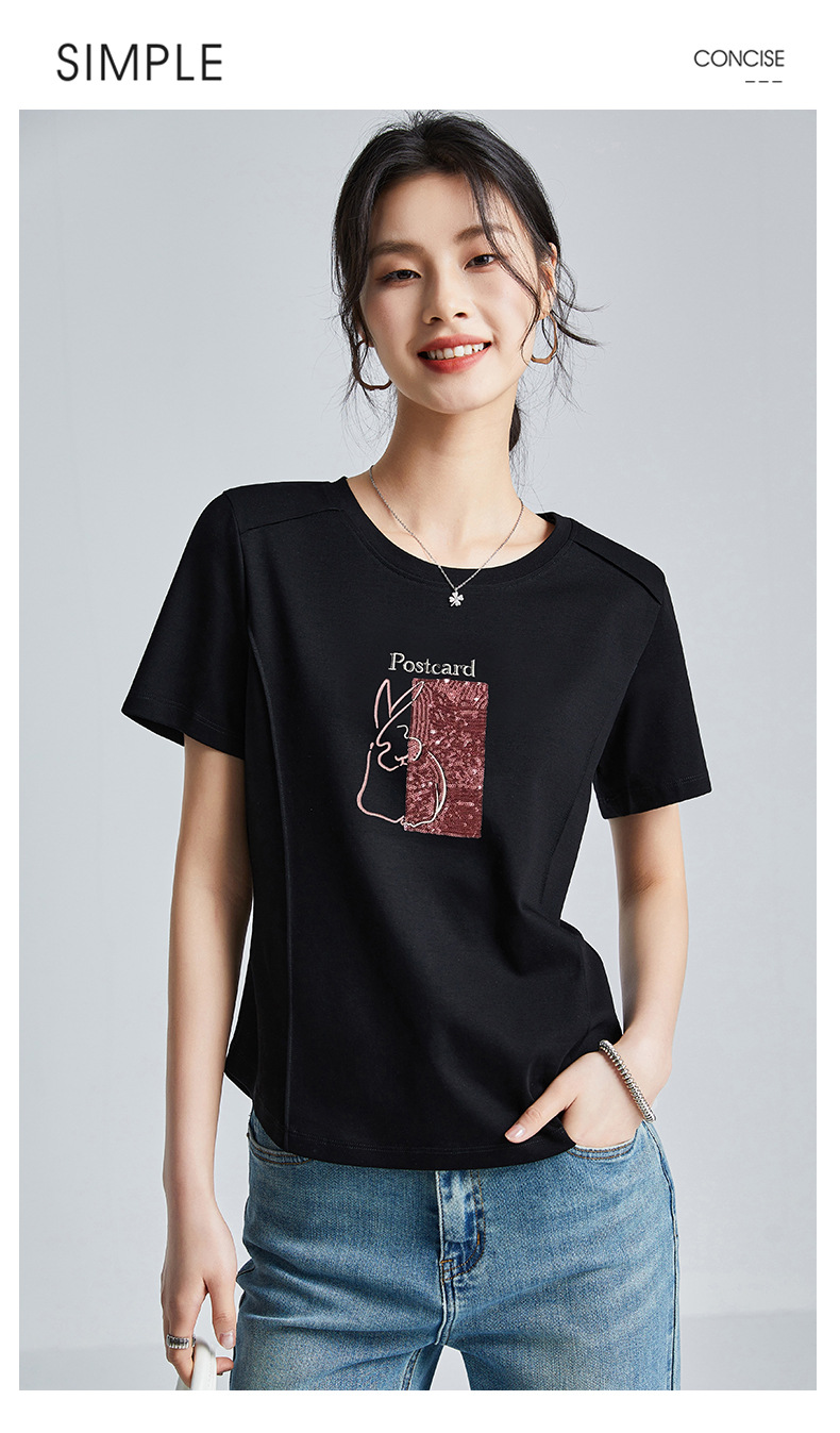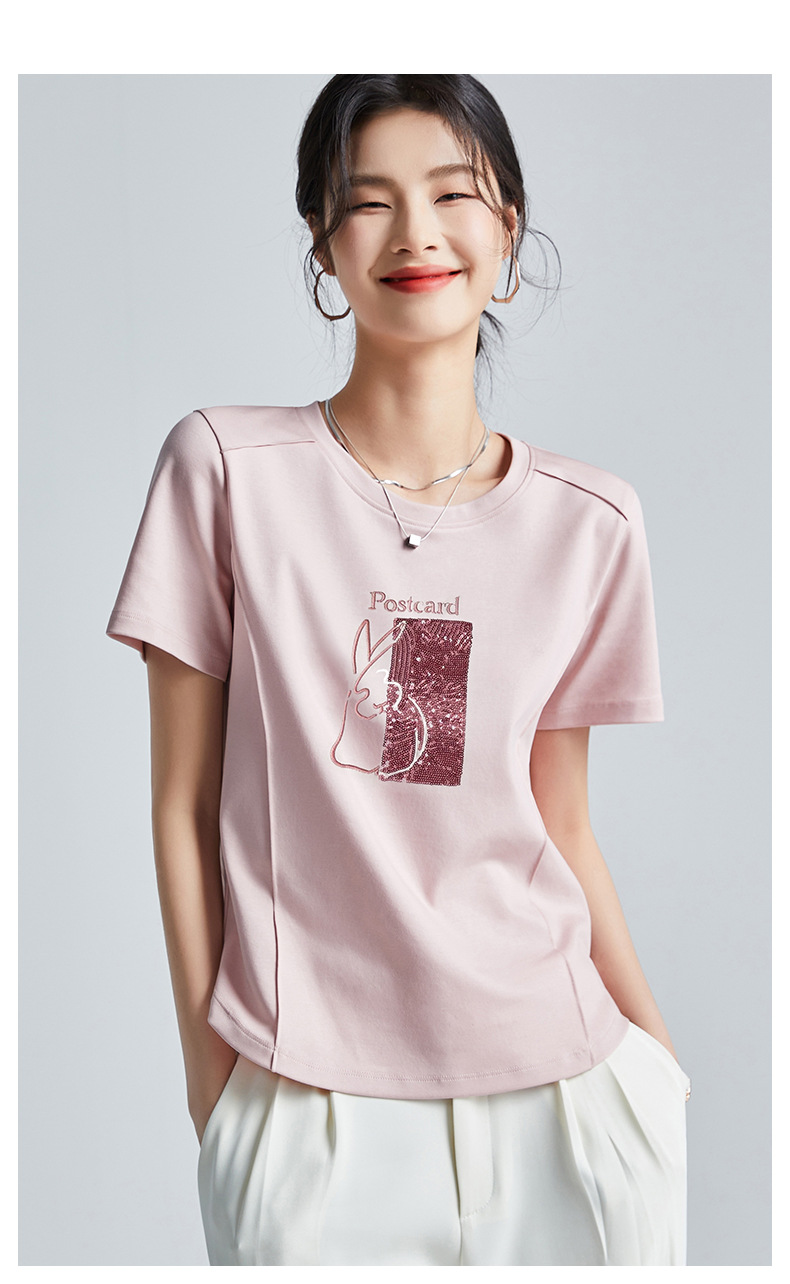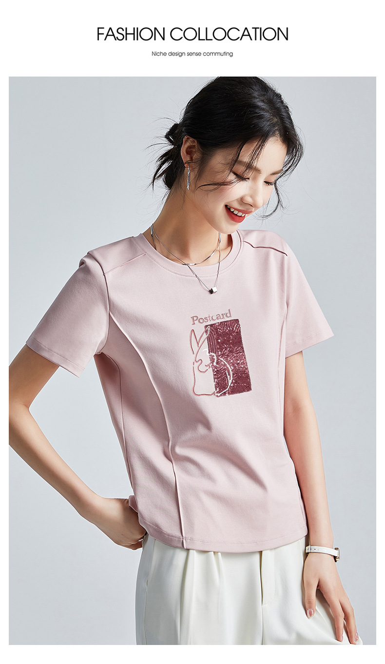 시원한 실크광택 코튼 프렌치 스타일 화이트 반팔 티셔츠 여성용 여름 2026 신상 루즈핏 자수 라운드넥 1688 상의스토어 가기