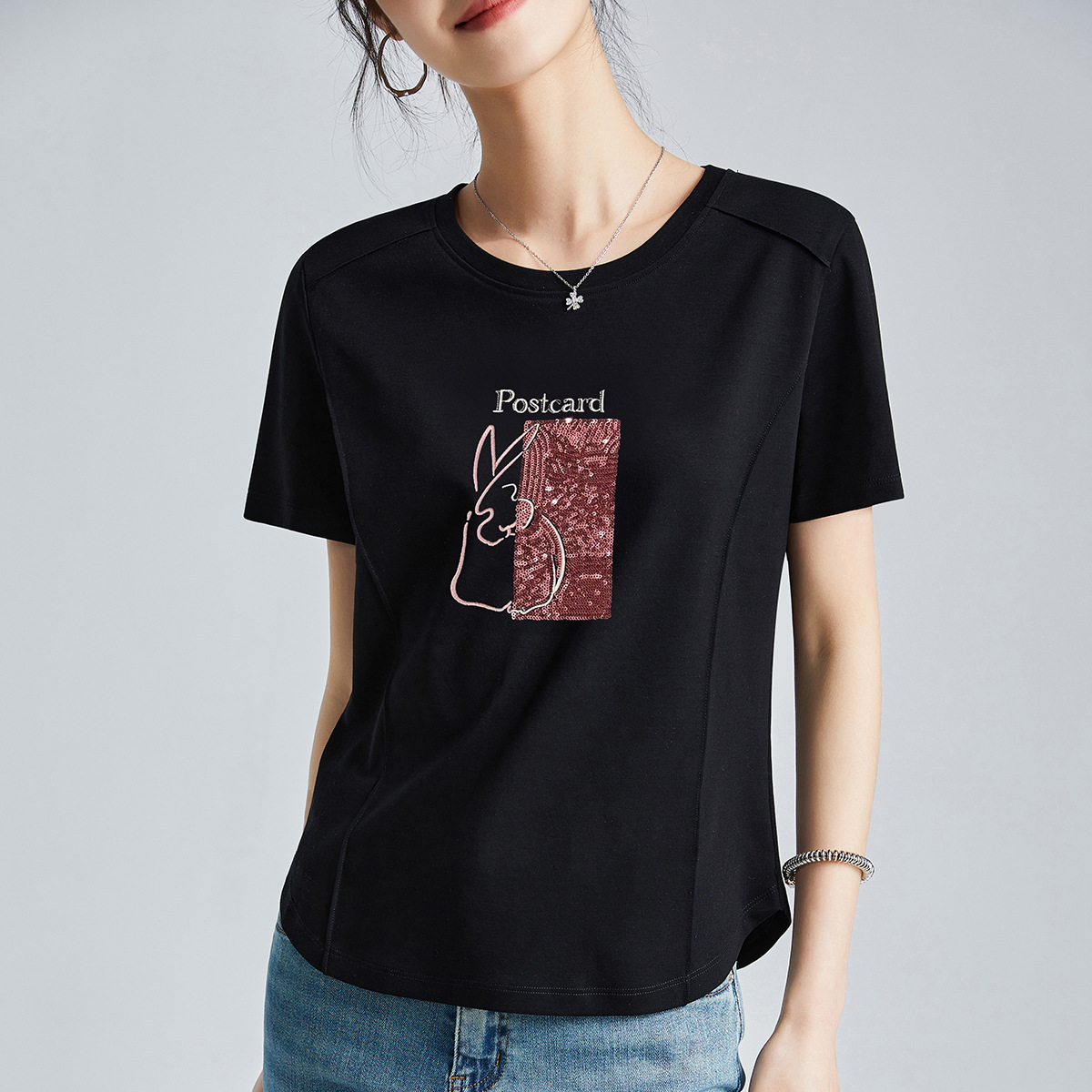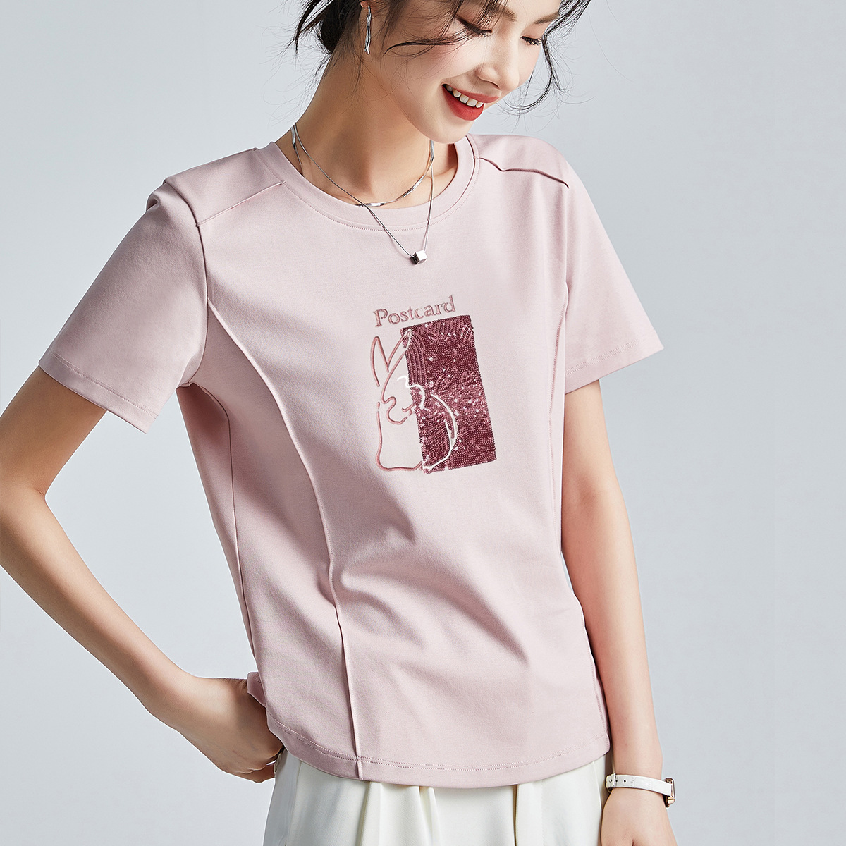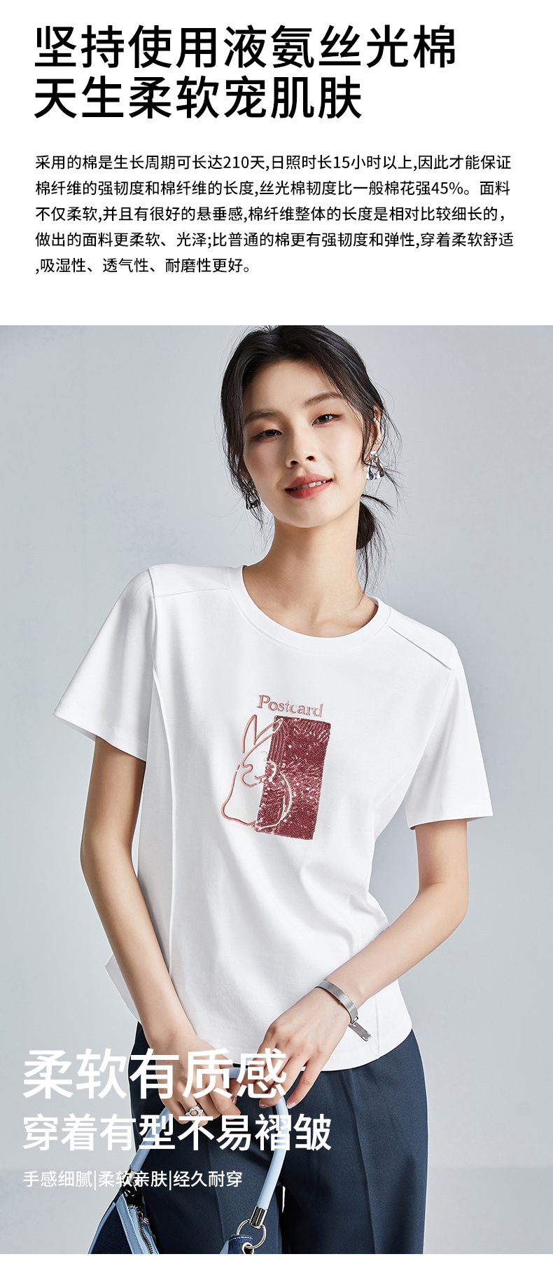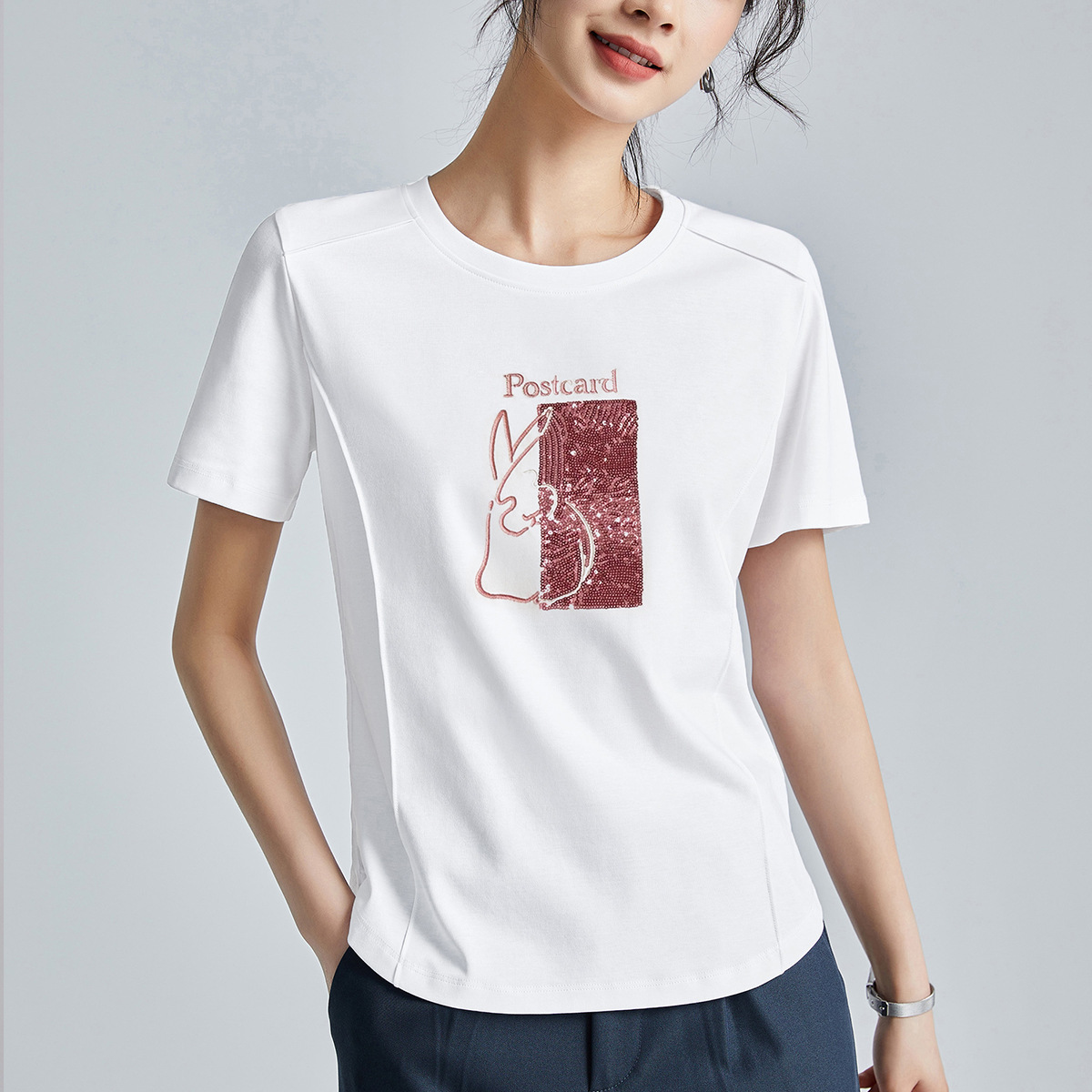 시원한 실크광택 코튼 프렌치 스타일 화이트 반팔 티셔츠 여성용 여름 2026 신상 루즈핏 자수 라운드넥 1688 상의스토어 가기