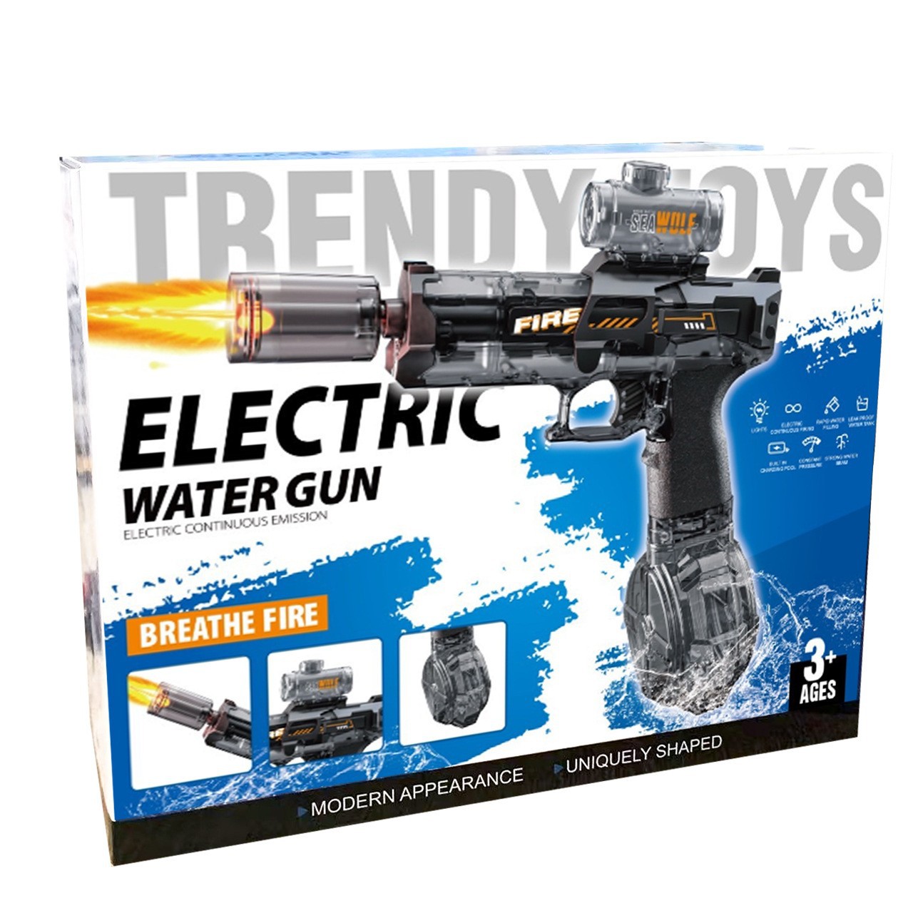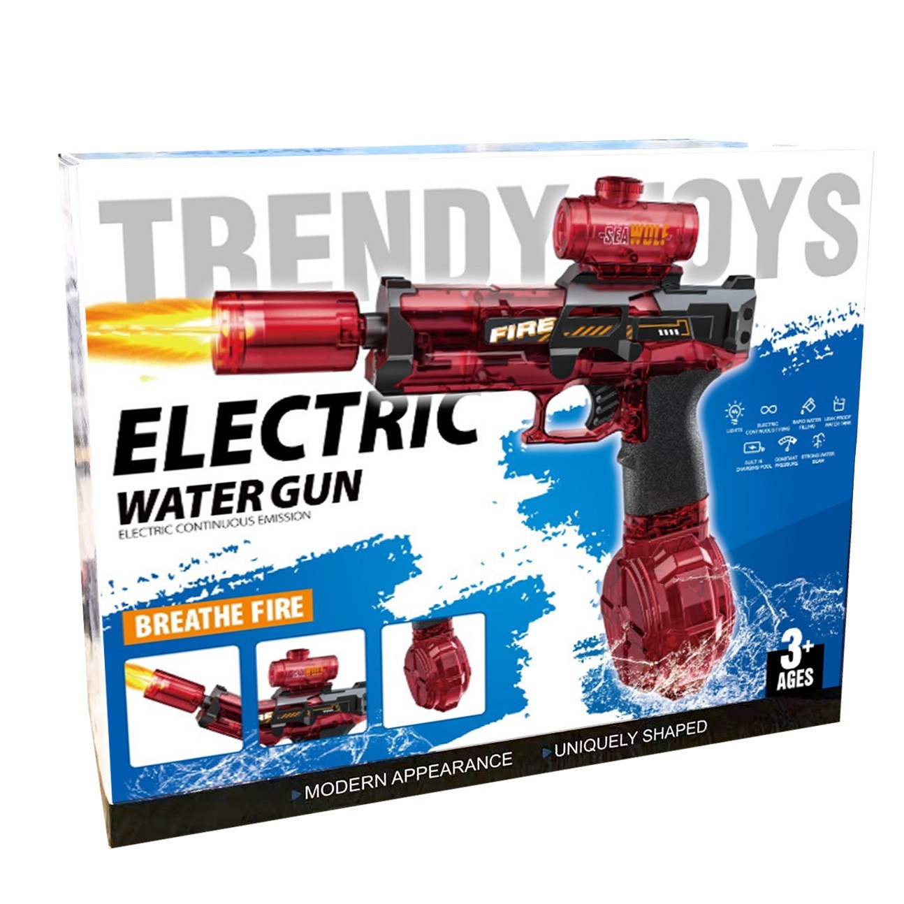 Firelight 작은 얼음 마우스 전기 물총 어린이 물 잡기 화재 연속 고속 연결 백 챔버 펄스 고압 물총