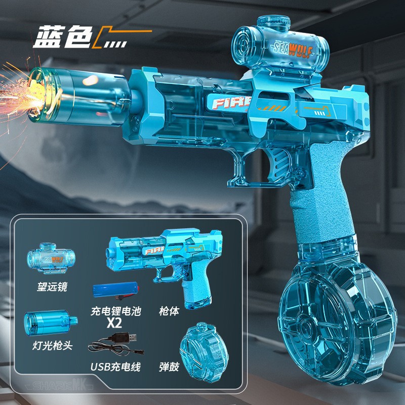 • 총 머리 분리형 소형 얼음 쥐 전기 물총 [파란색] 컬러 박스 단일 배터리