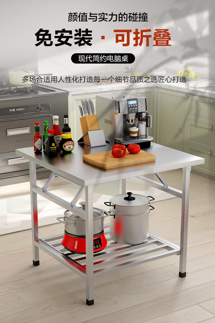 스테인레스 스틸 접이식 테이블 식탁 기숙사 임대 주택 집에서 먹고 쓰기 야외 바베큐 노점 휴대용 테이블스토어 가기