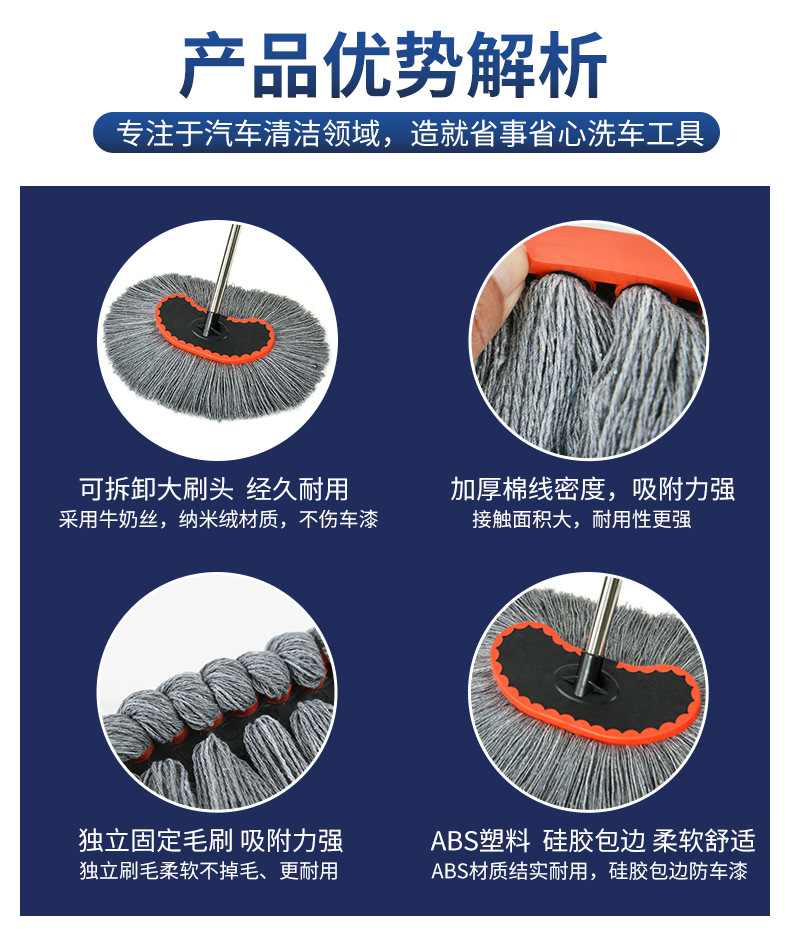 대형 트럭 세차 걸레 연장 막대 3m 두껍고 두꺼운 수축 워터 브러시 트럭 버스 특수 제품